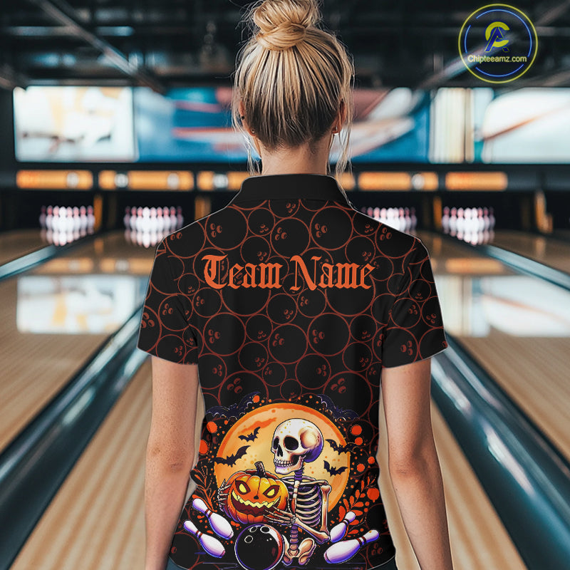 Custom Funny Skeleton Bowling Quarter-Zip Shirts For Women, Halloween Bowling Team Outfit IPHW9604