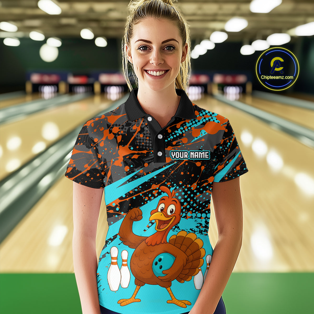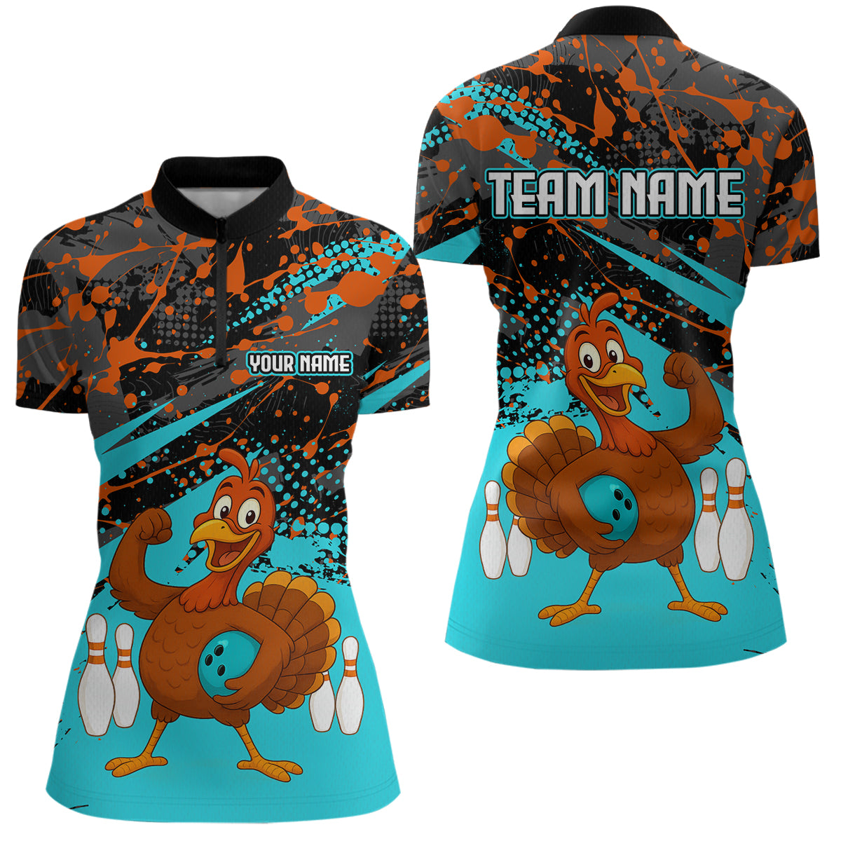 Turquoise Funny Turkey Bowling Team Shirt for Women Bowling Jersey Thanksgiving Bowling Outfit QZT776