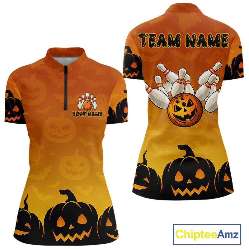 Personalized Orange Funny Bowling Halloween Shirt For Women Custom Bowling Team Jersey Outfit TDM4926