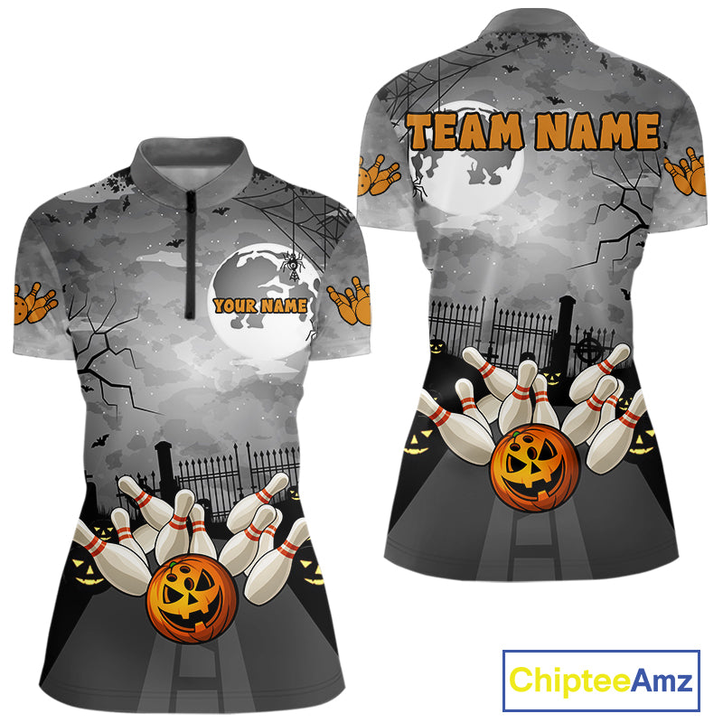 Funny Bowling Halloween Shirt For Women Custom Halloween Bowling Jersey Team Polo & 1/4 Zip TDM4949