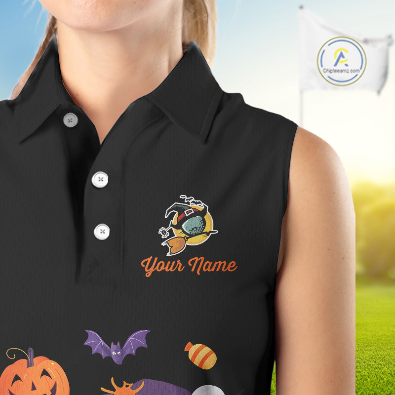 Funny pumpkin golf ball clubs Women Sleeveless polo shirts Custom Halloween team golf jerseys NQS10807