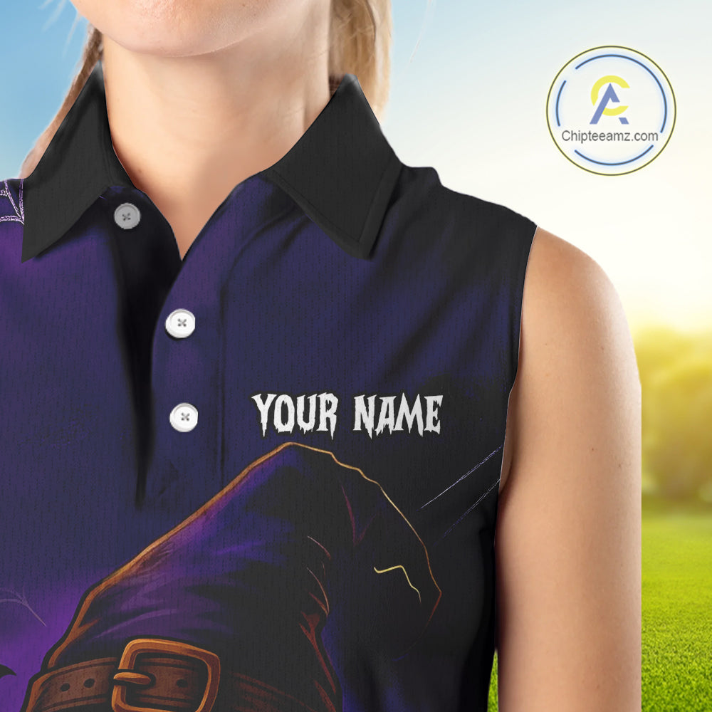 Funny Purple Skull Halloween Women Sleeveless polo shirts Custom Halloween team ladies golf wear NQS10804