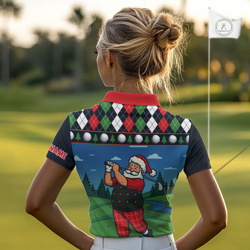 Funny Santa Golf argyle pattern Christmas Golf polo shirts for Women custom Christmas golf gifts NQS10856