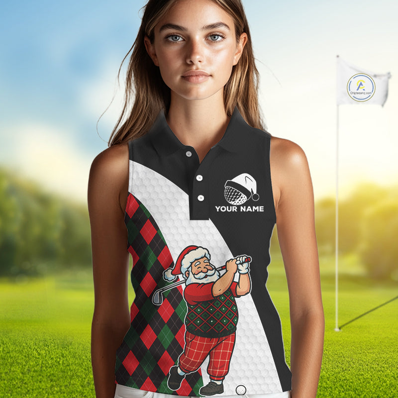 Funny Santa Golf Christmas Sleeveless Polo Shirt green & red argyle pattern Custom Ladies Golf outfit NQS11053