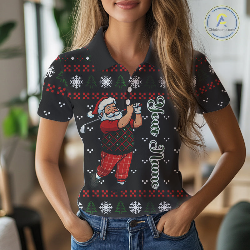 Funny Ugly Christmas pattern Santa Golf Polo Shirts For Women Custom best Ladies golf wear golf gifts NQS11067