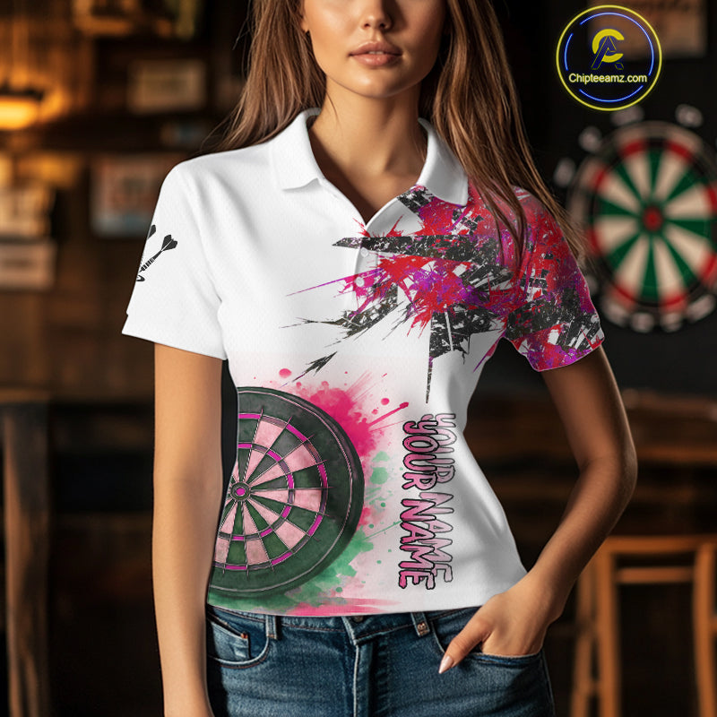 Custom Grey And Pink Splashed Dartboard Darts Polo Shirt For Women Darts Team Jerseys NYN0949