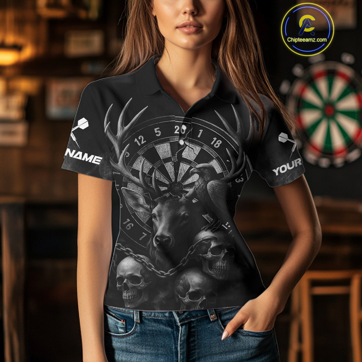 Custom Black Deer And Skull Cracked Dartboard Polo Dart Shirt For Women Dart Outfit Team Jersey NYN1312