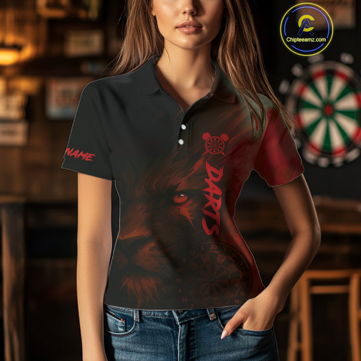 Custom Black-Red Horror Lion Dartboard Dart Polo Shirt For Women Grunge Dart Jerseys NYN1413