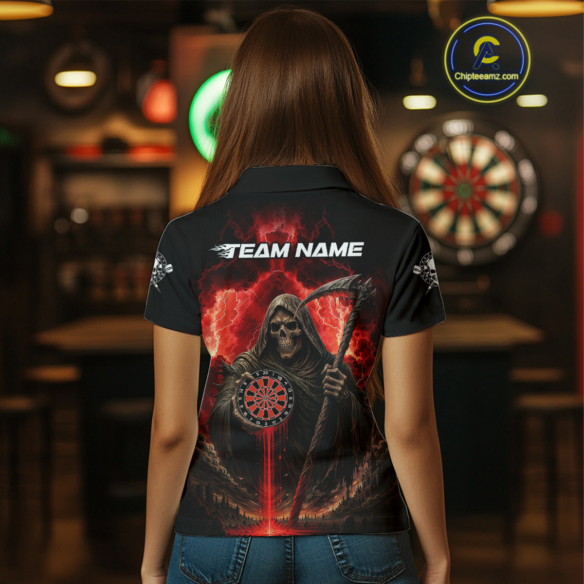 Custom Lightning Red Grim Reaper Dartboard Dart Polo Shirt For Women Dart Team Jerseys NYN1418