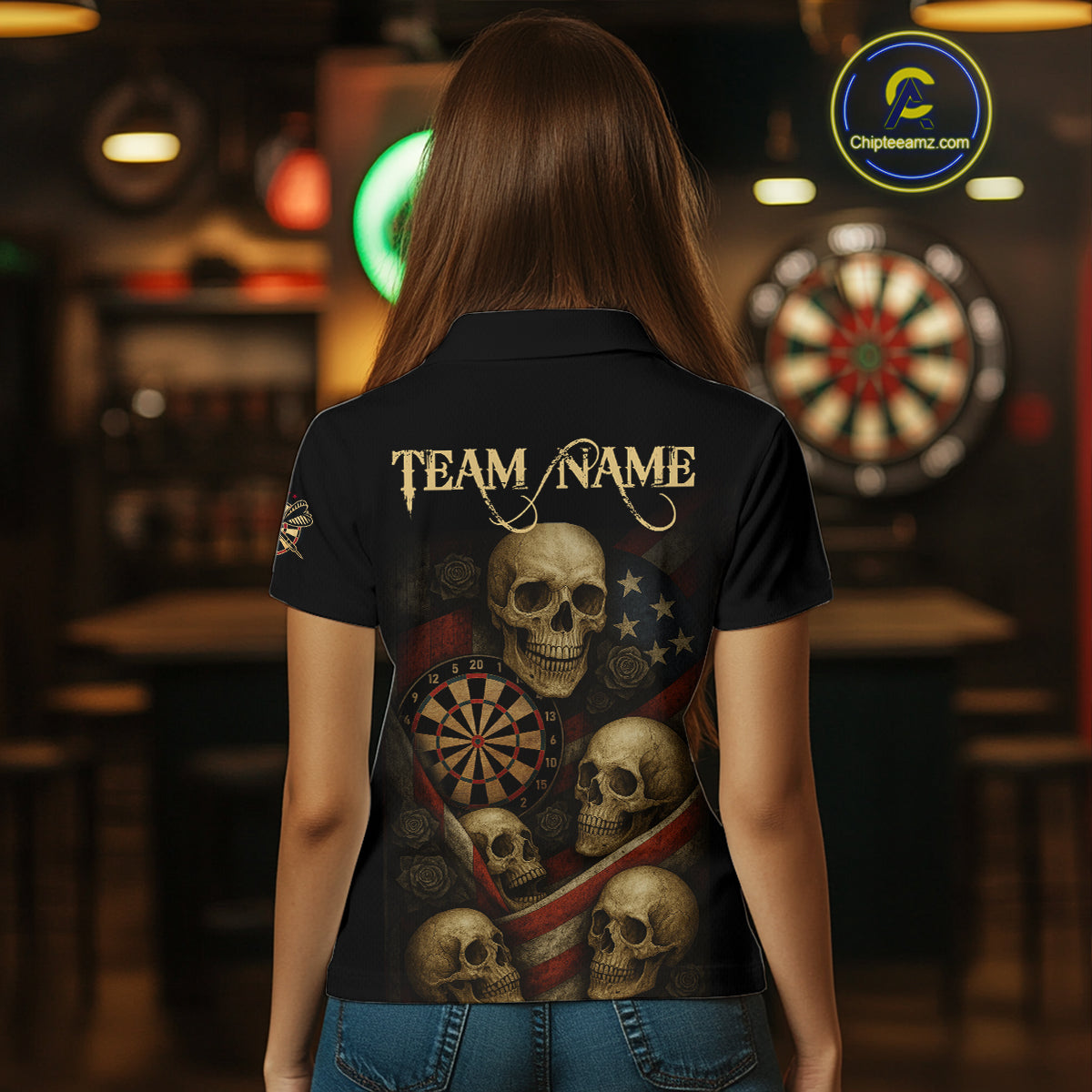 Custom Grunge Skull Dartboard Patriotic Dart Women Polo Shirt US Flag Dart Jerseys NYN1562