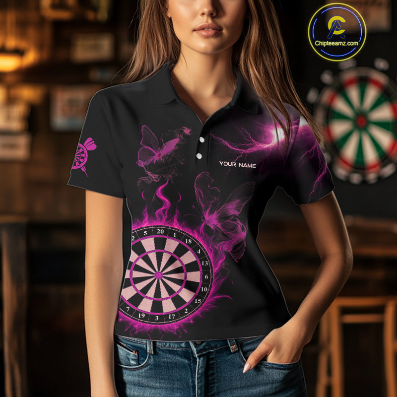 Custom Pink Smokes Butterfly Flame Dartboard Dart Women Polo Jerseys Dart Team Shirt NYN1676