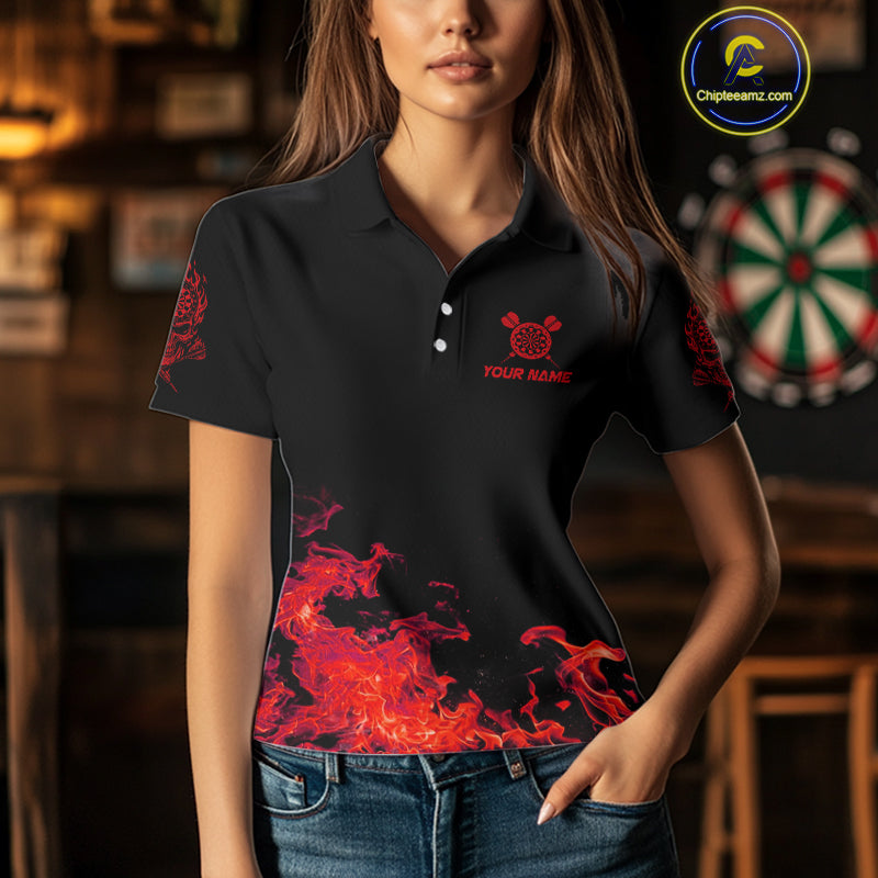 Custom Red Flames Skull Dart Arrow Dart Women Polo Jerseys Flame Dart Team Shirt NYN1707