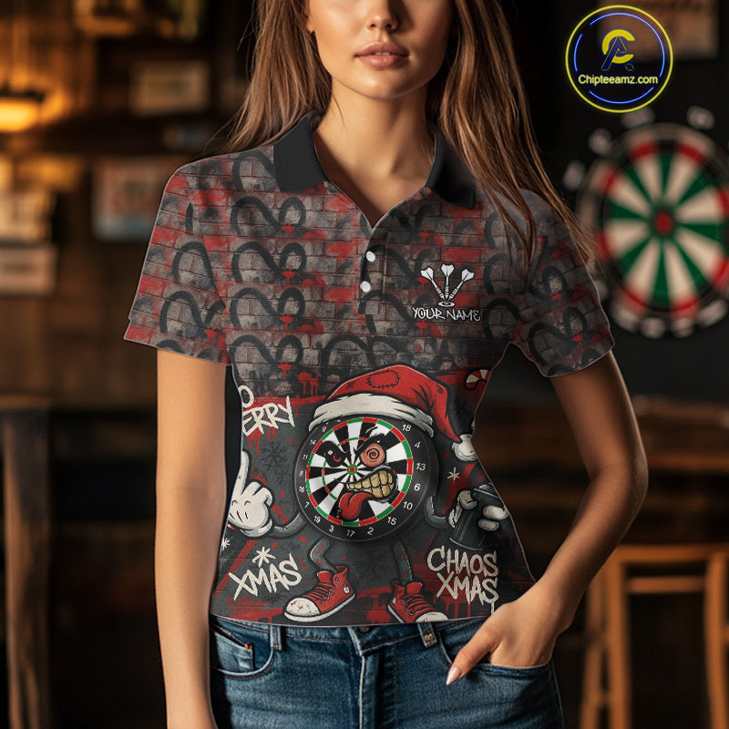 Custom Funny Dartboard Red Graffiti Christmas Darts Polo Shirt For Women, Xmas Dart Jerseys NYN1829