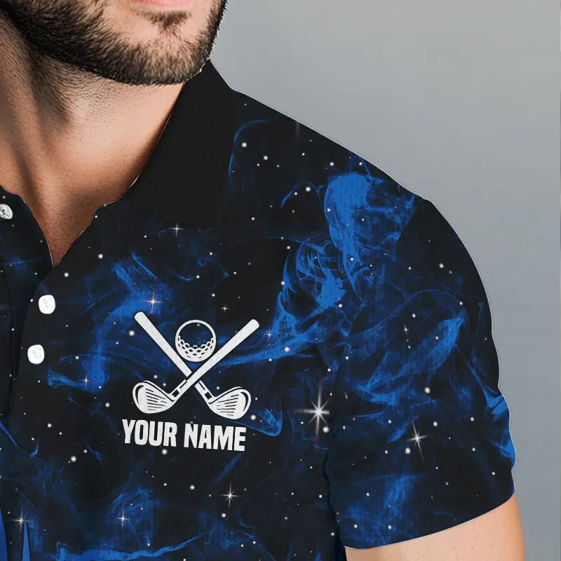 Black and Blue Galaxy Mens golf polo shirt custom cool golf shirts, personalized golf gifts NQS9694