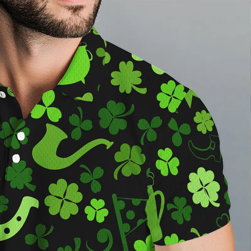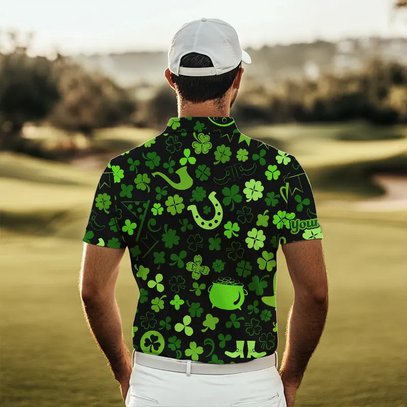 Green shamrock St Patrick Day pattern Lucky polo golf shirts for men Custom St Patrick golf attire NQS9649
