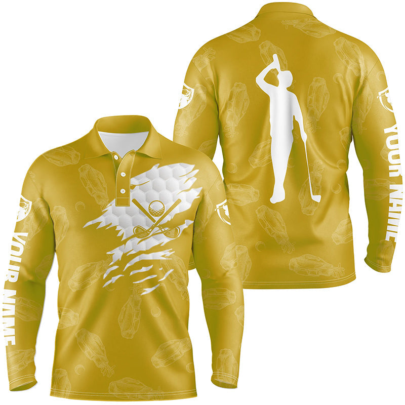 Mens golf polo shirt custom name golf clubs pattern shirt | Yellow NQS7536