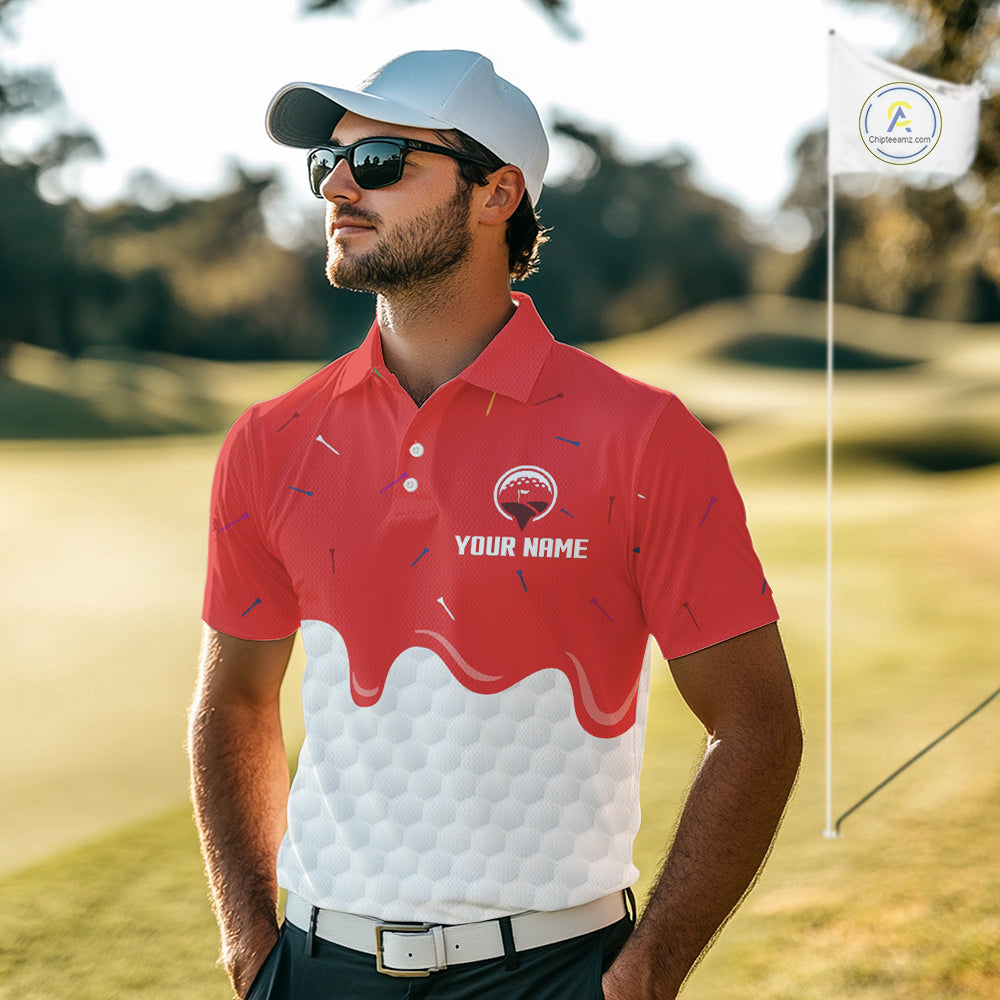 Mens golf polo shirts custom red Ice Cream Melting On Golf Ball, golf gifts for mens NQS9988