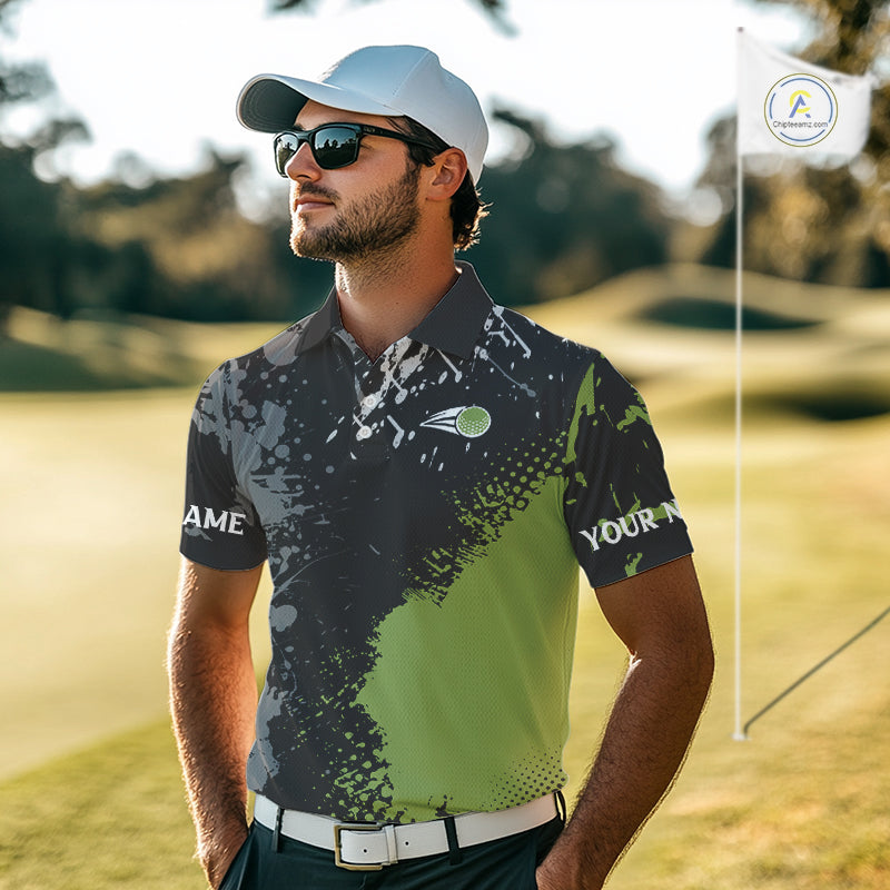Black and Green Camo Golf Polo shirt for Men Custom golf team uniform golf outfit NQS9797