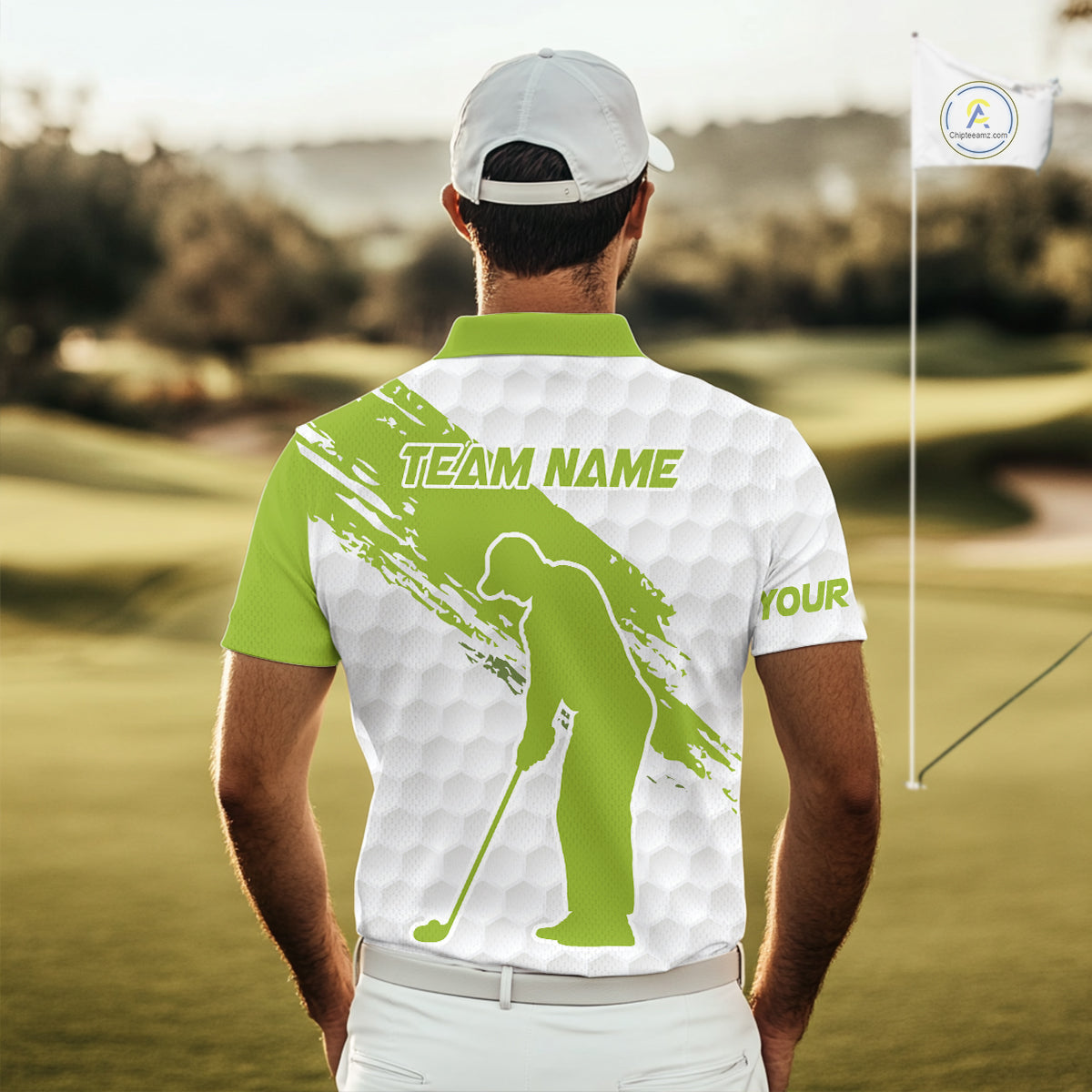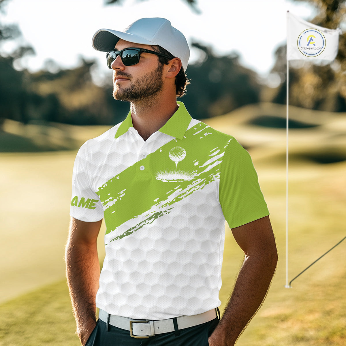 Green and White golf ball pattern Mens golf polo shirts custom team name mens golf clothes NQS9974