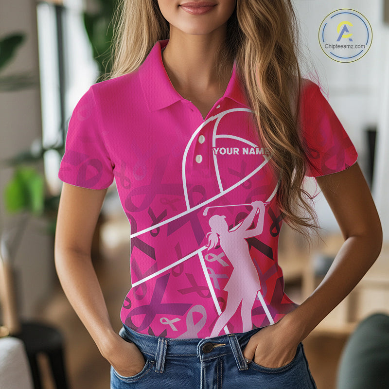 Pink ribbon pattern breast cancer awareness Women golf polo shirt Custom team Golf attire For ladies NQS10189