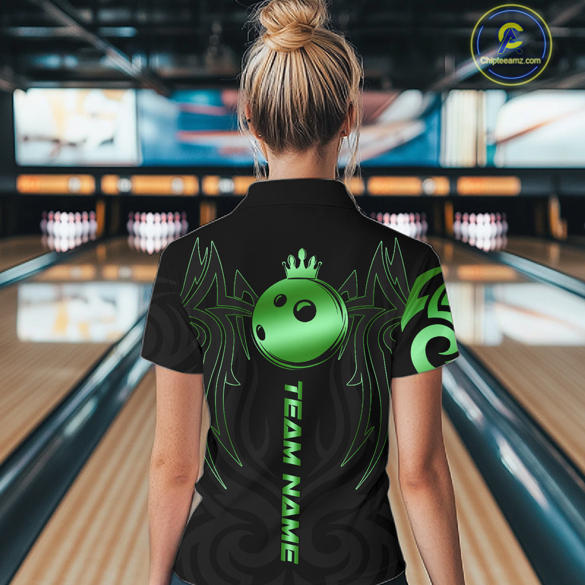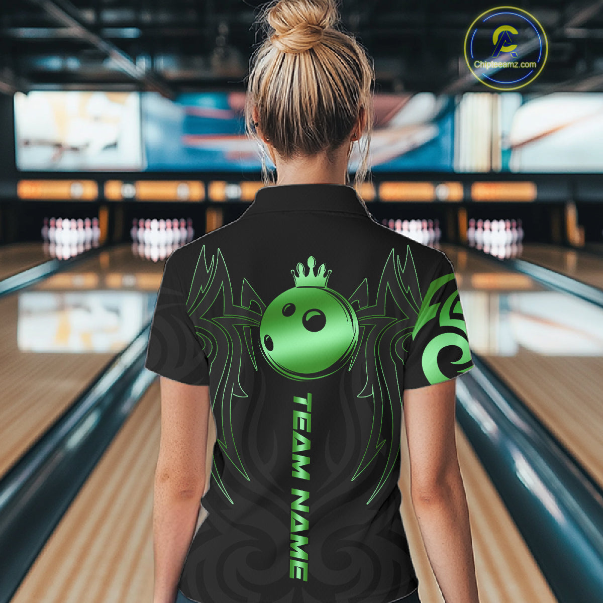 Black and Green crown Bowling ball Polo, Quarter Zip Shirts for Women Custom Bowling Team jerseys NQS10731