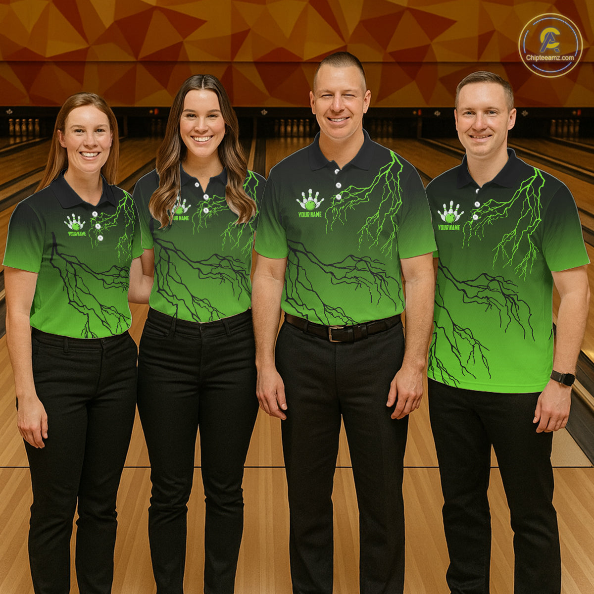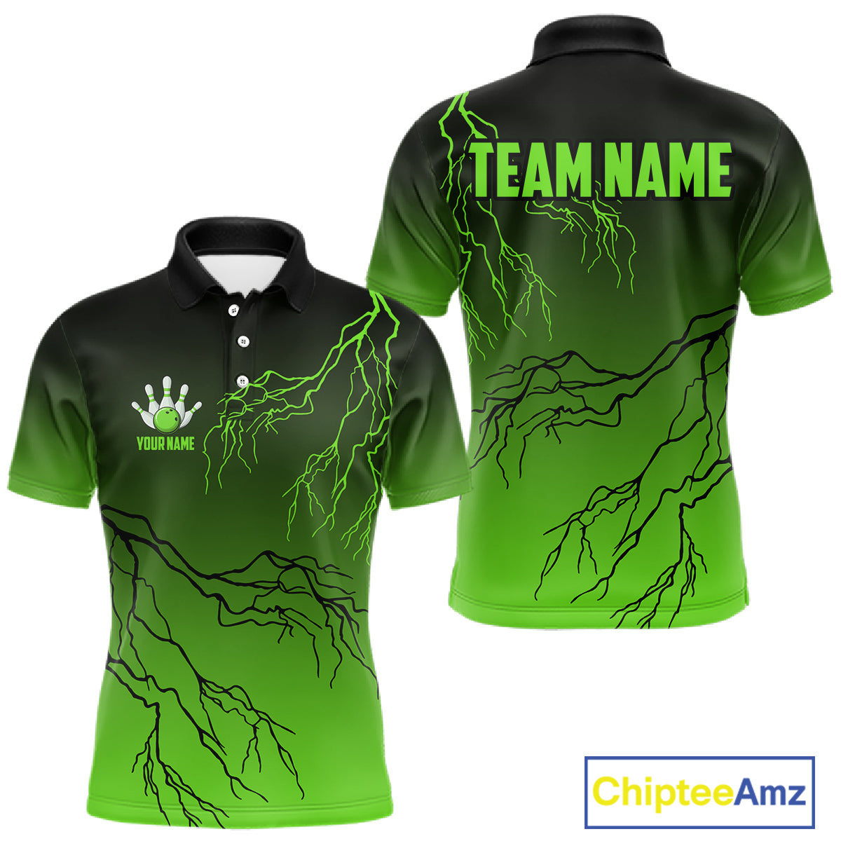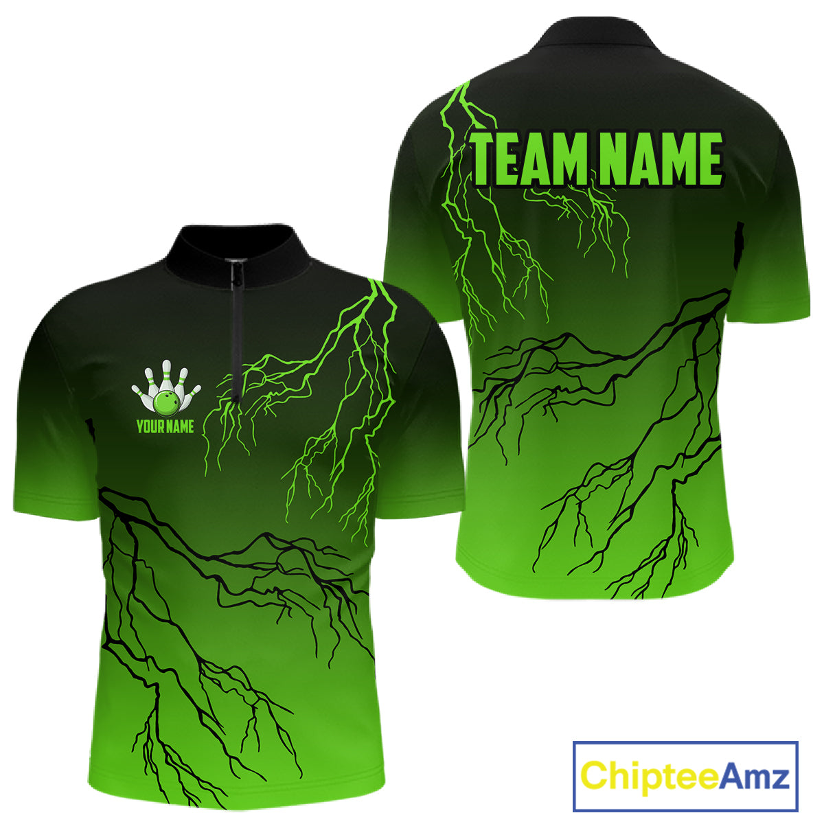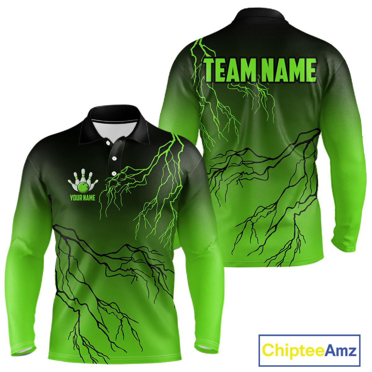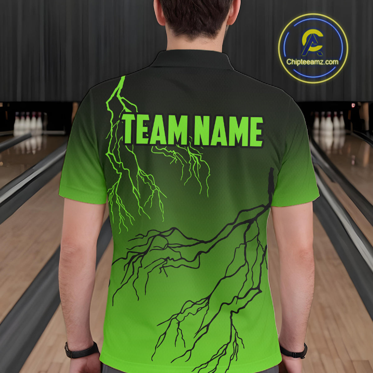 Black and Green gradient storm Lightning thunder Bowling shirts for Men Custom Bowling Team Jerseys NQS11171