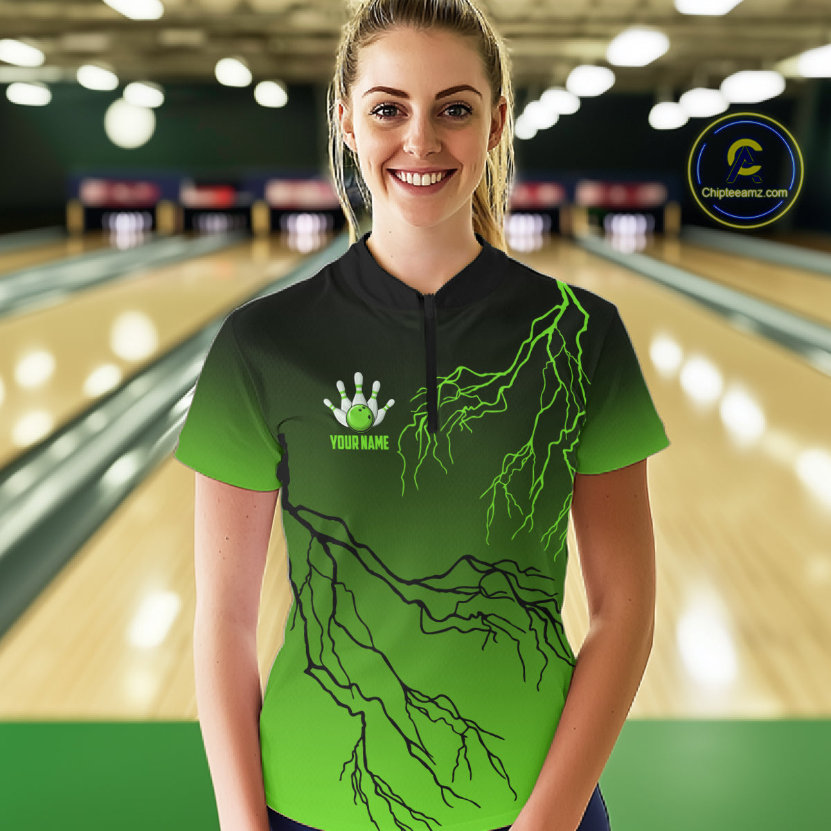 Black and Green gradient storm Lightning thunder Bowling shirts for Women Custom Bowling Team Jerseys NQS11171