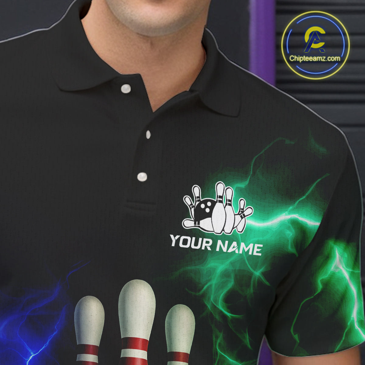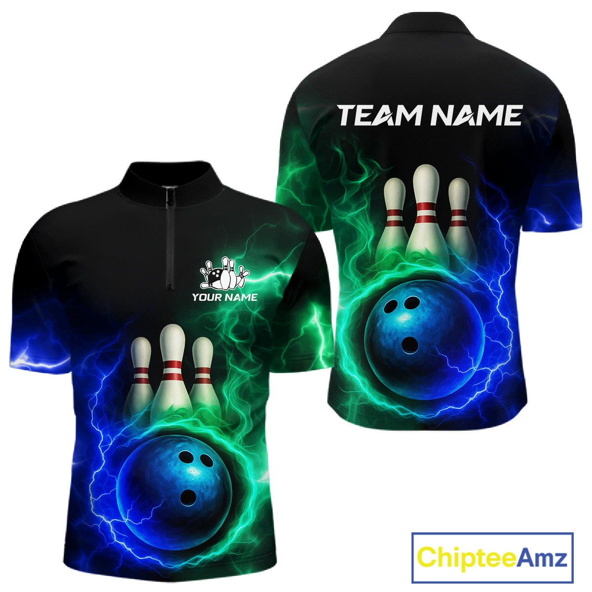 Blue and Green Lightning thunder Black Bowling Shirts For Men custom Bowling Team Jerseys NQS10379