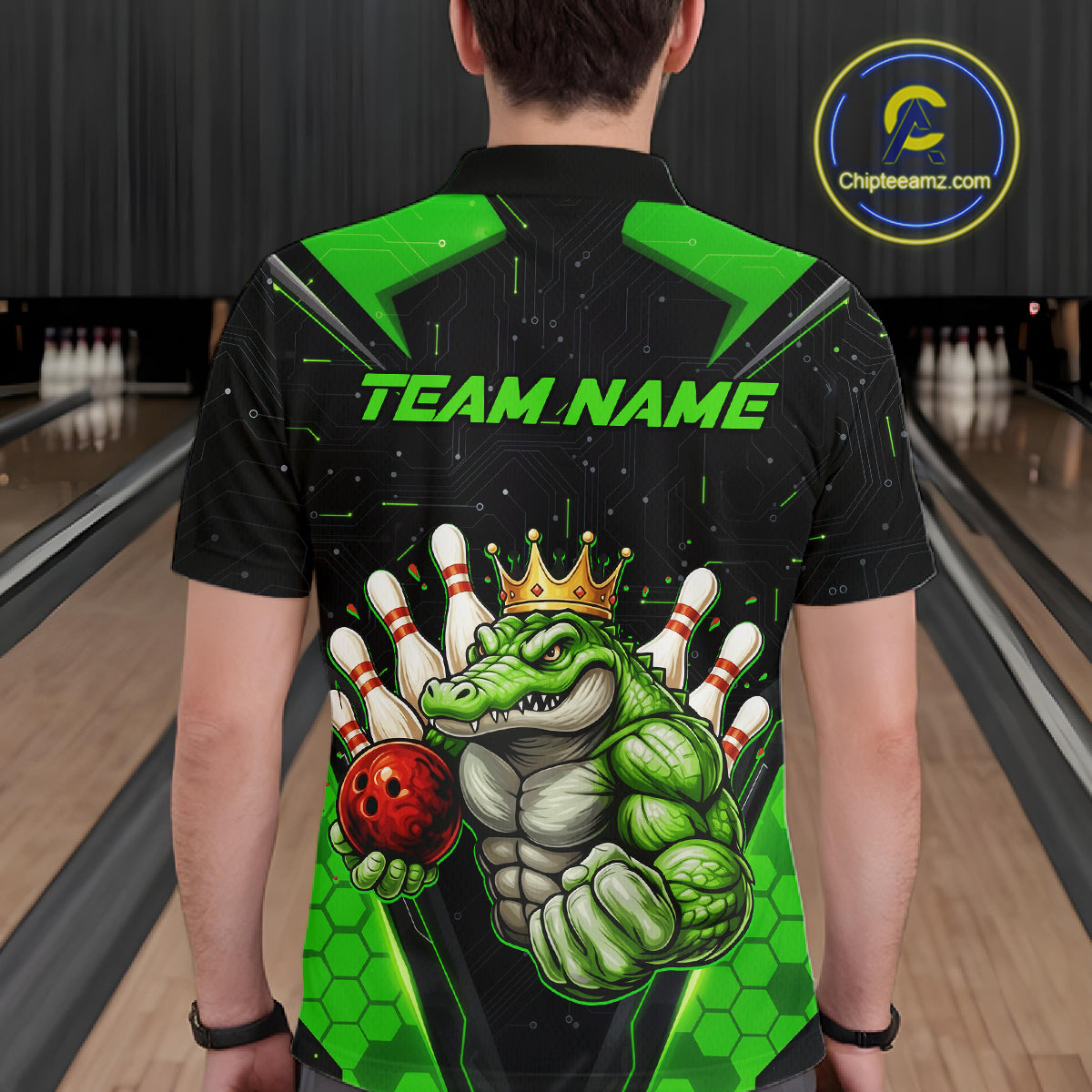 Custom Funny Green Crocodile Bowling Shirt Alligator Bowling Jersey for Men Polo & 1/4 Zip QZT823