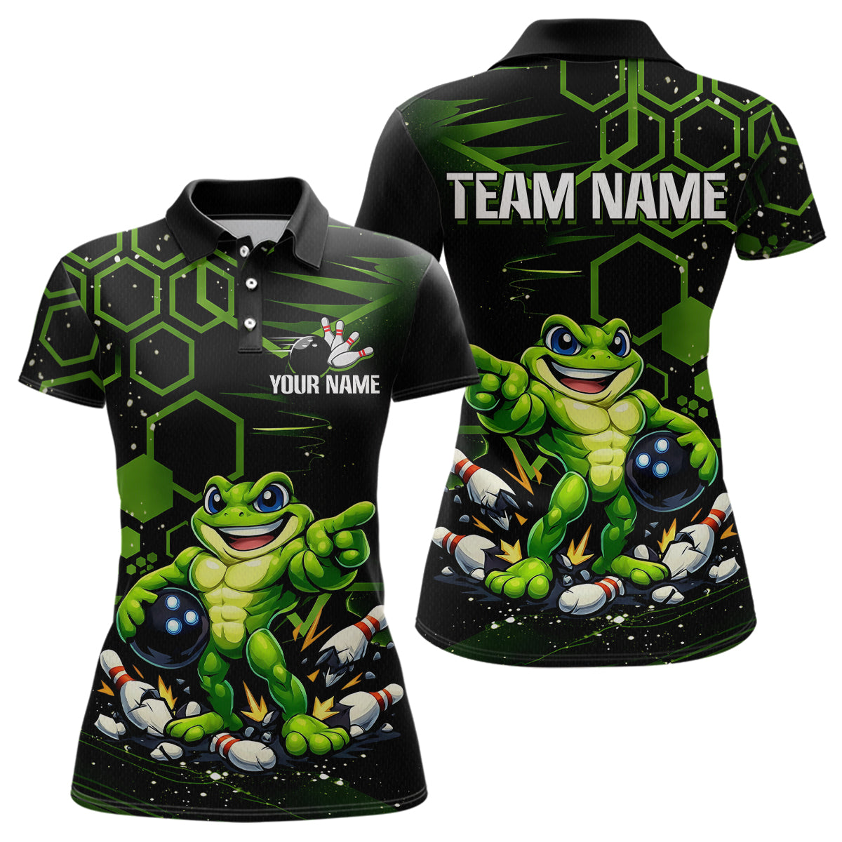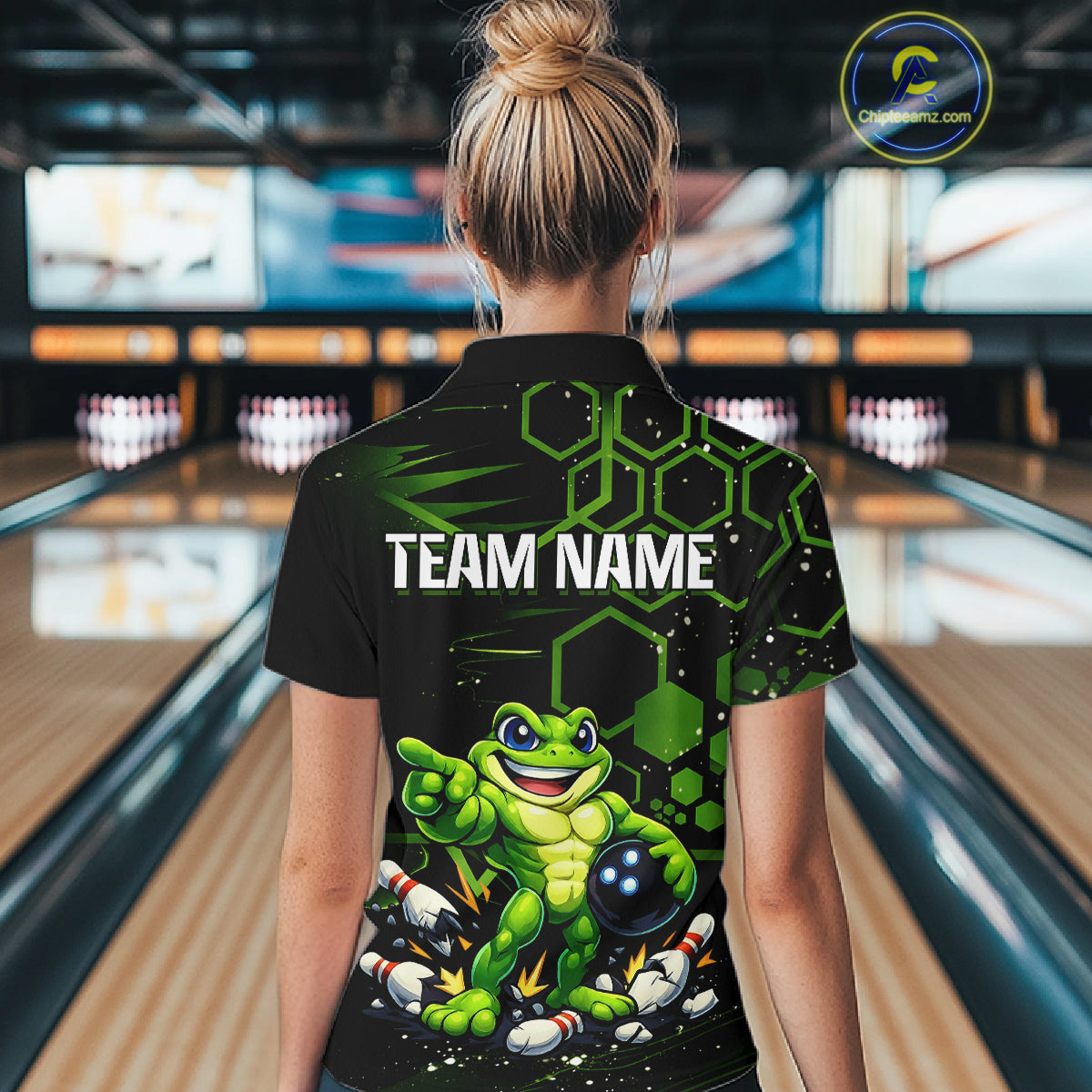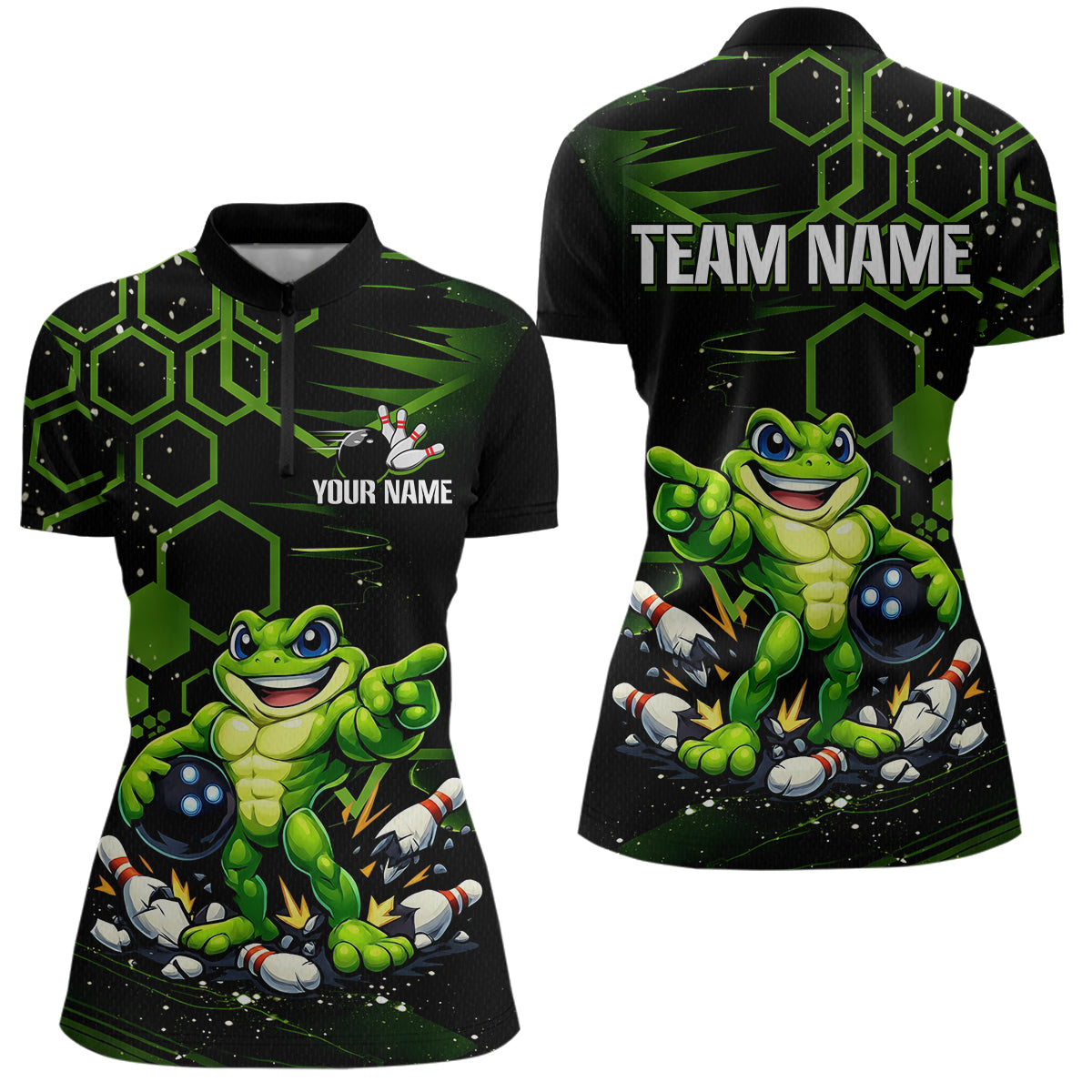Custom Funny Green Frog Bowling Team Jersey Ugly Bowling Shirt for Women Polo & 1/4-Zip QZT844