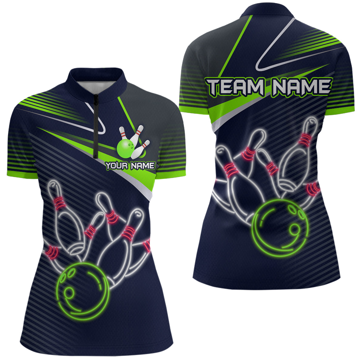 Custom Green&Blue Bowling Shirts for Men Women Team Bowling Polo & 1/4 Zip Shirt MBL41
