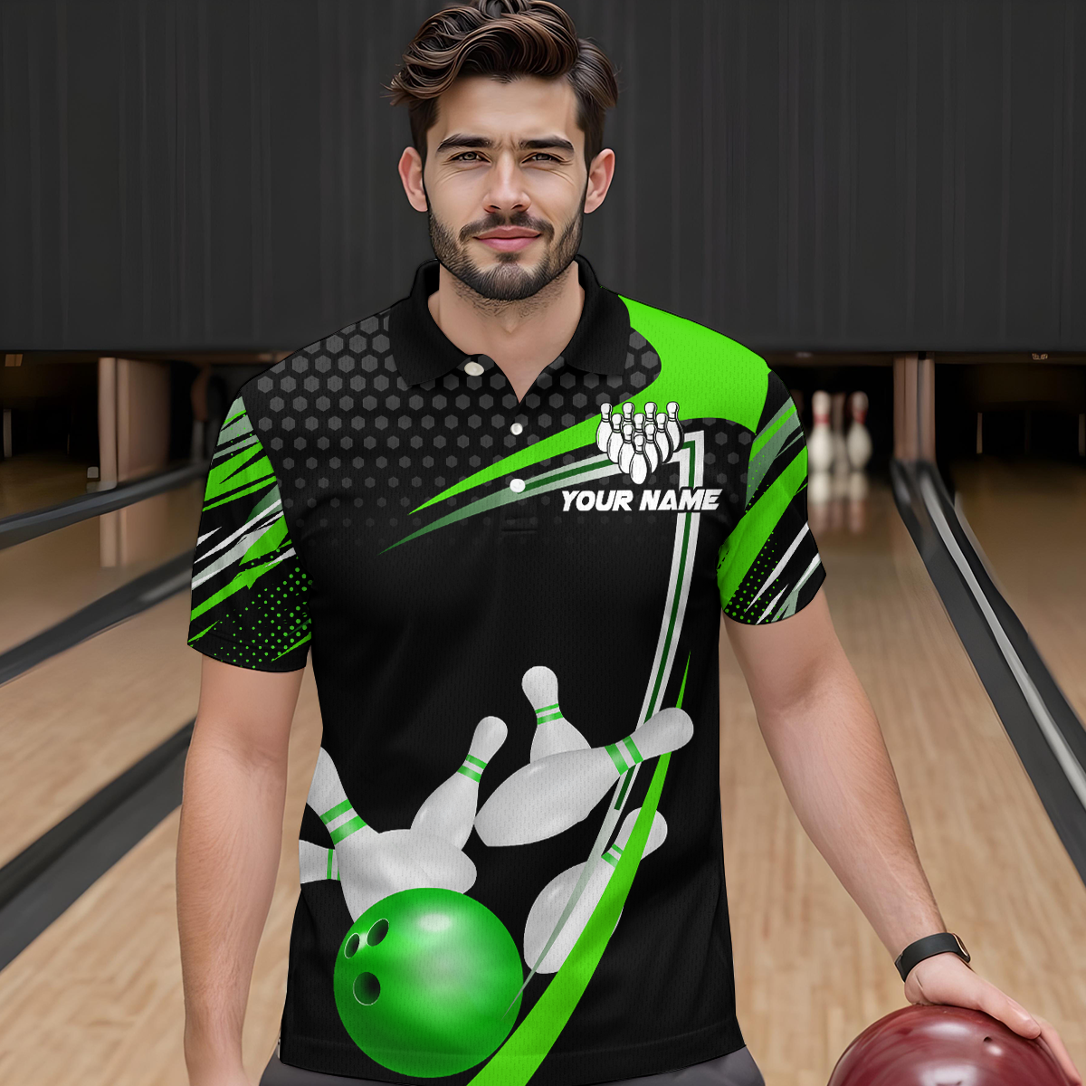 Green Bowling Shirts for Men and Women Bowling Shirt Team Bowling Polo & 1/4 Zip Shirt MBL36
