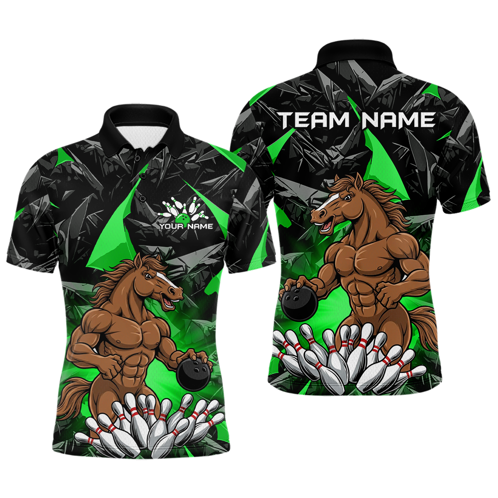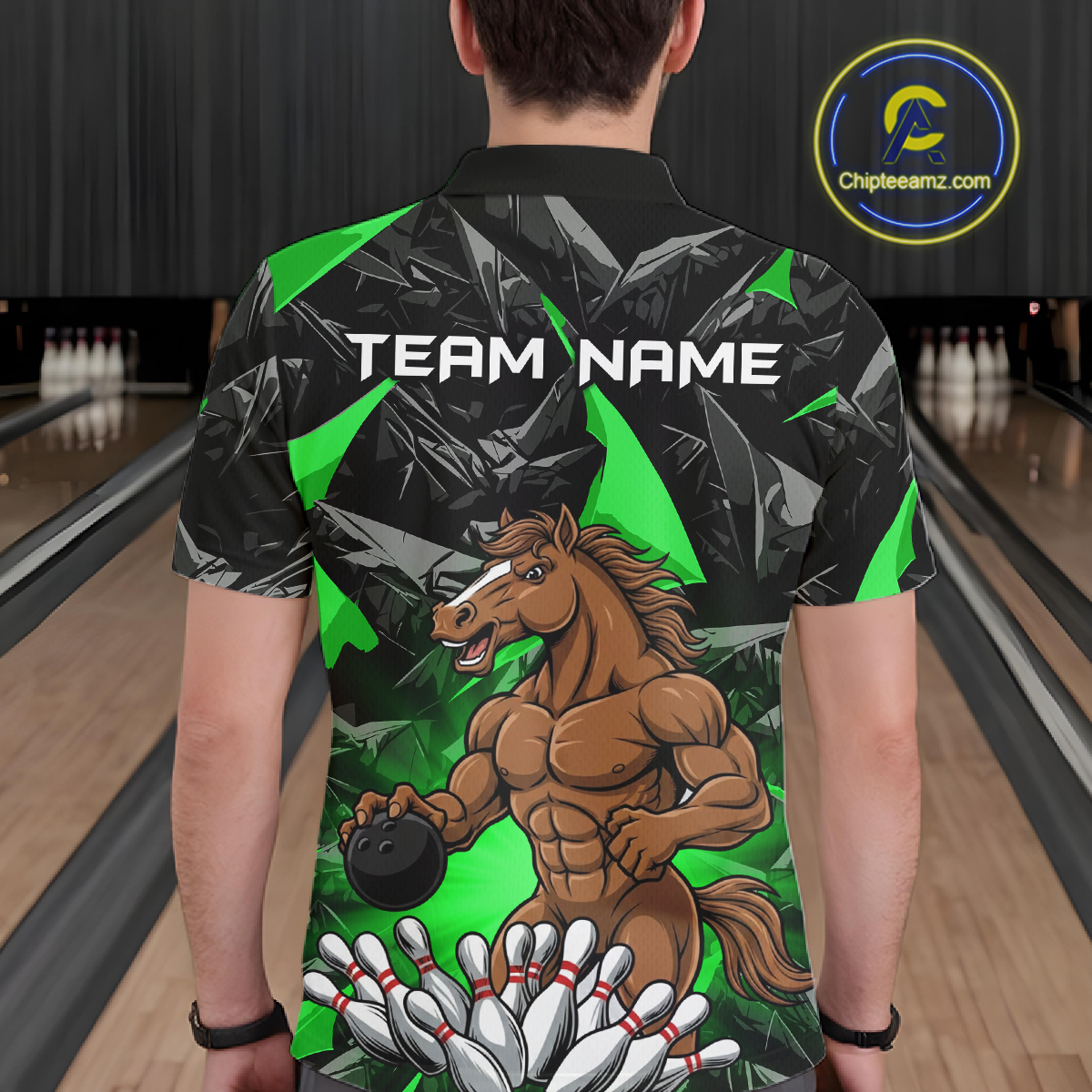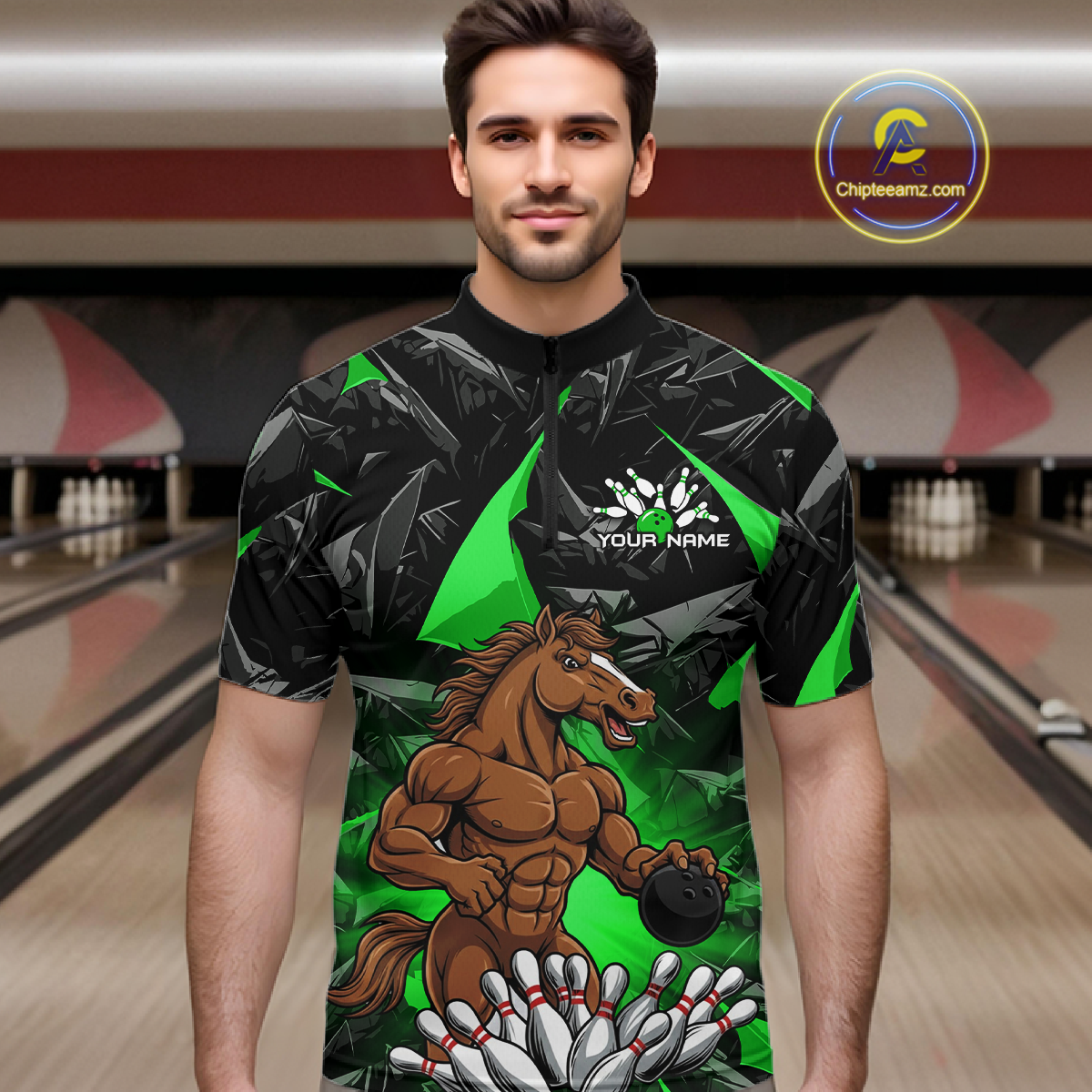 Custom Green Funny Horse Bowling Jersey for Men Bowling Team Shirts Bowling League Polo & 1/4 Zip HNT183
