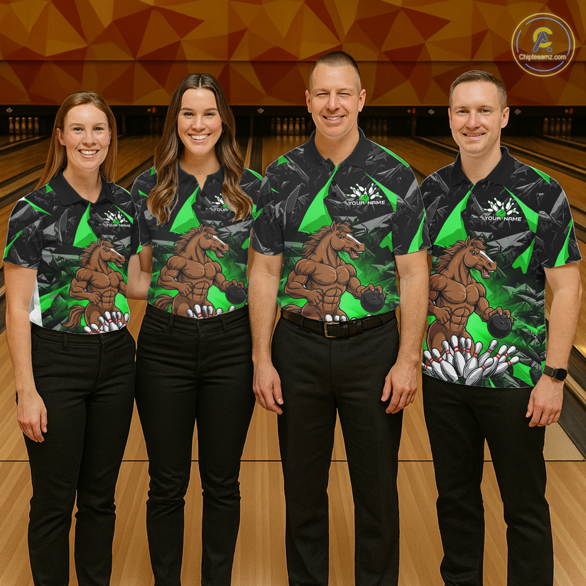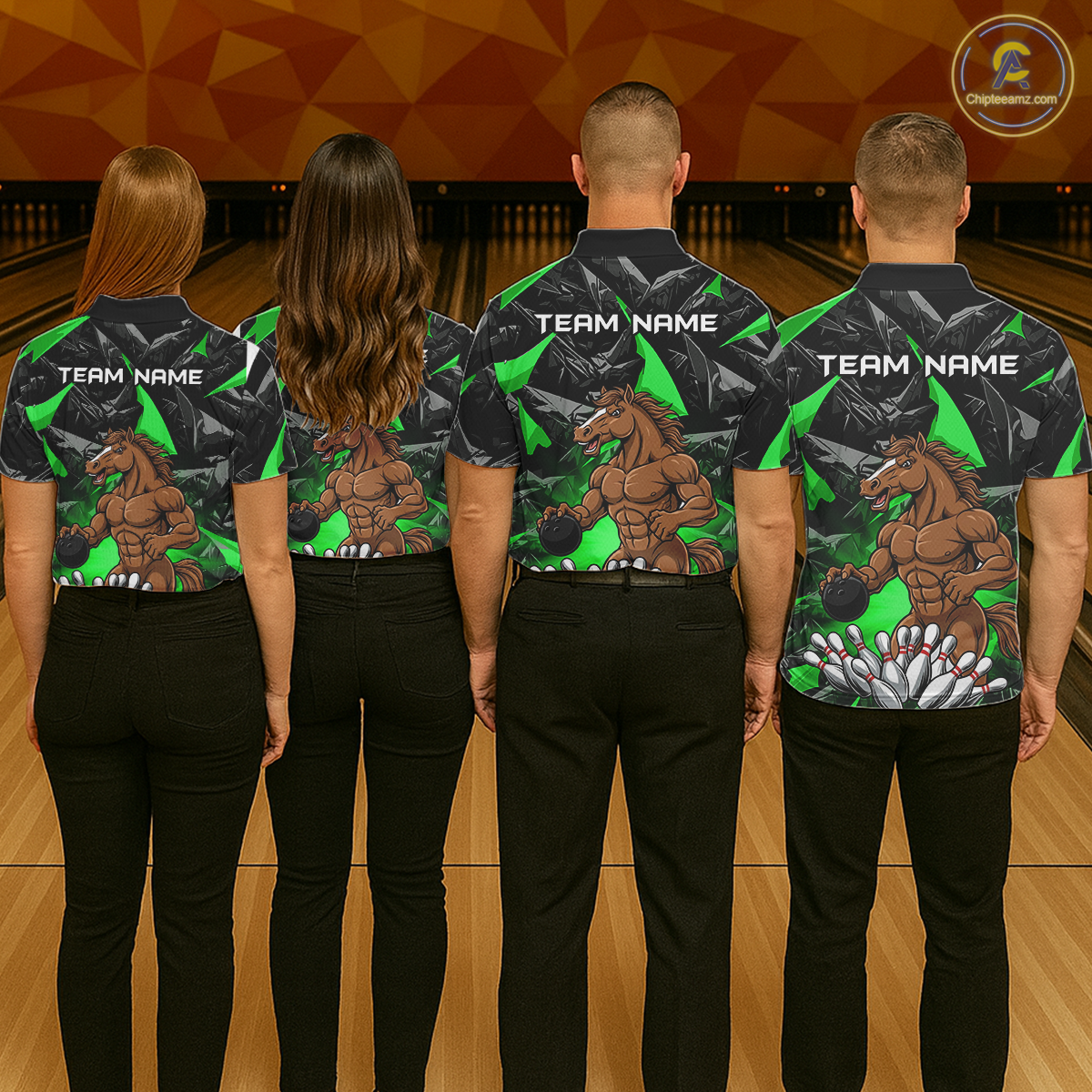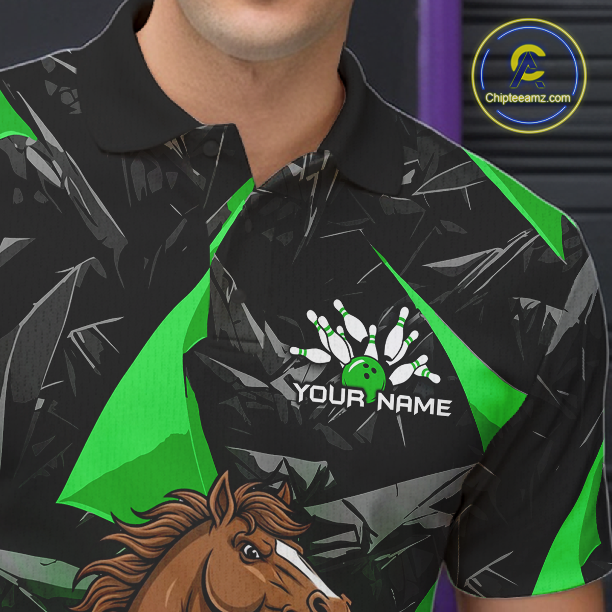 Custom Green Funny Horse Bowling Jersey for Men Bowling Team Shirts Bowling League Polo & 1/4 Zip HNT183