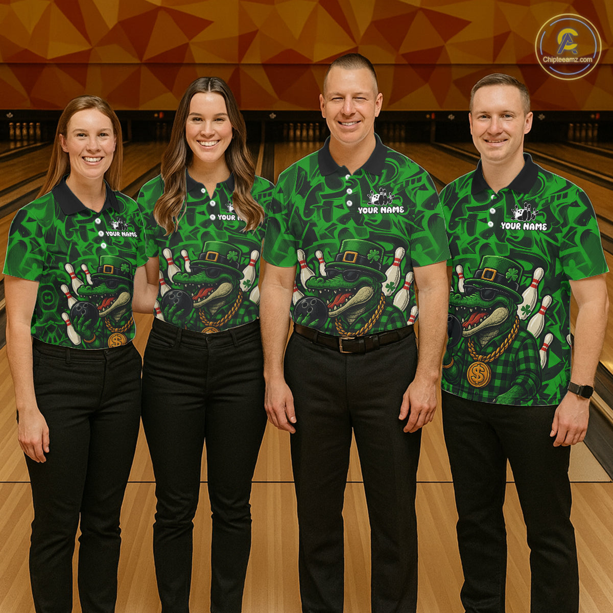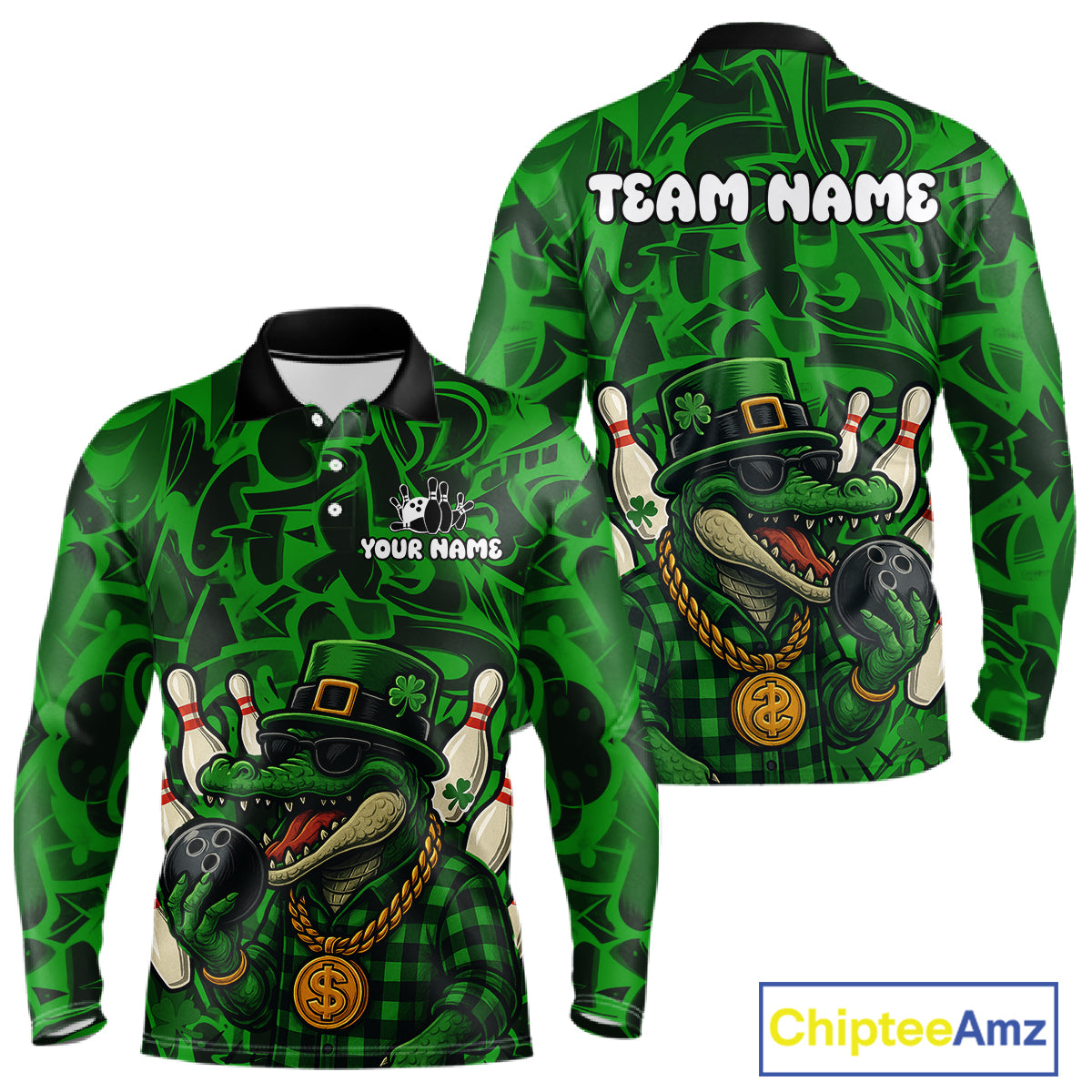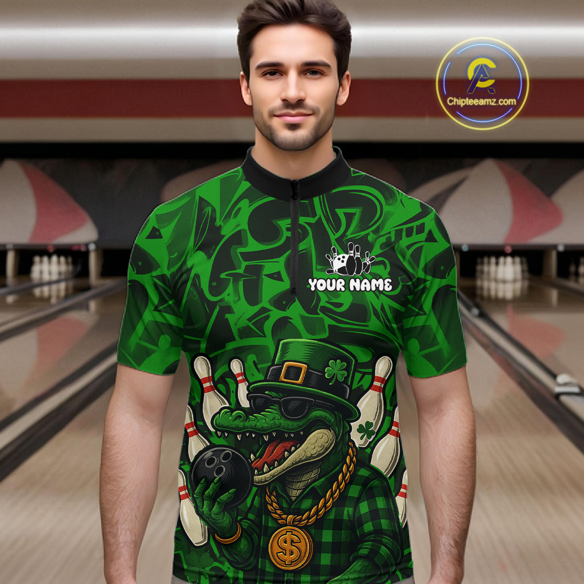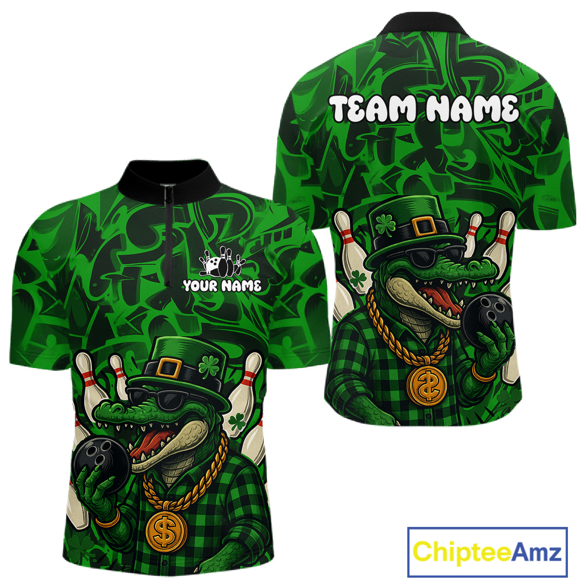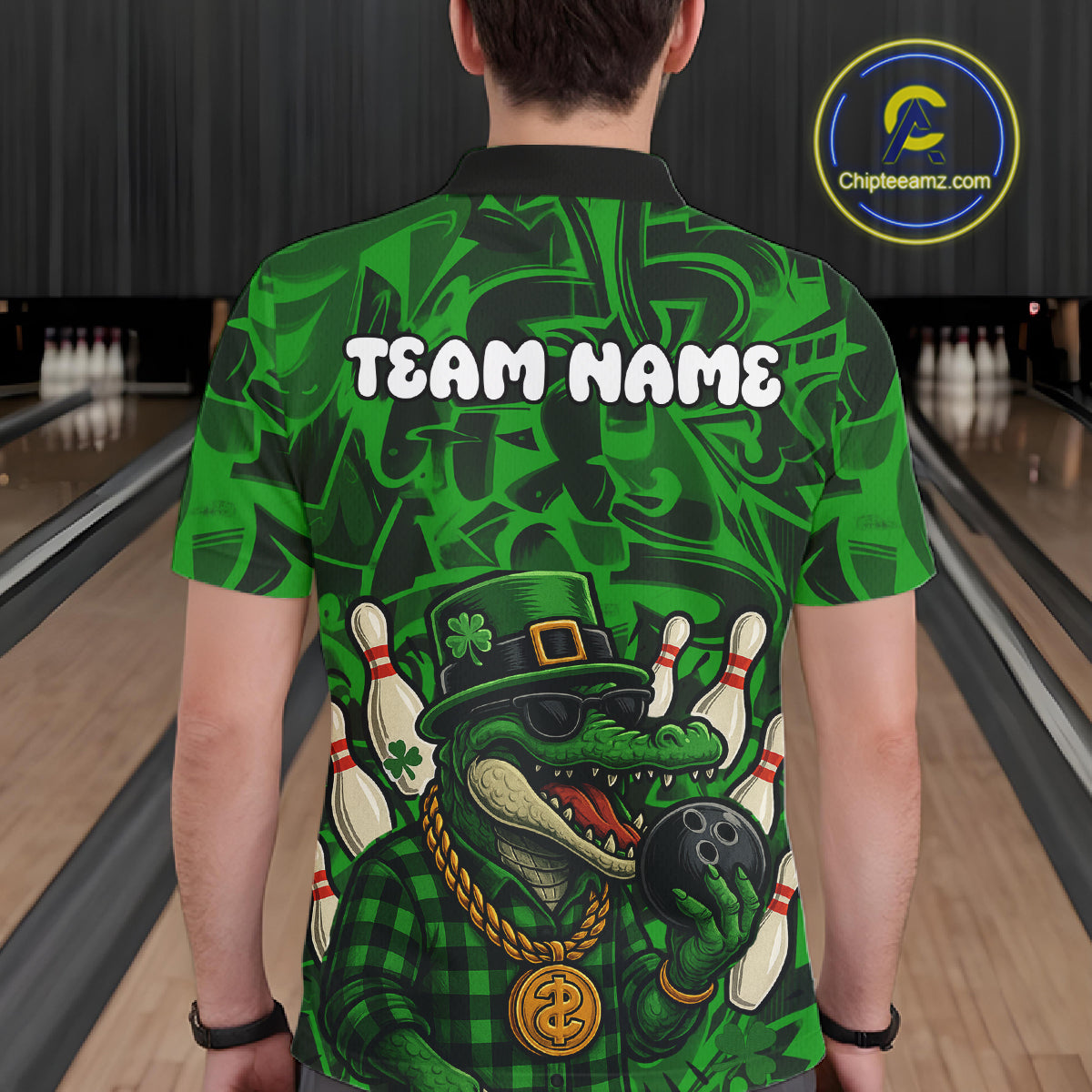 Funny Alligator Bowling Shirts For Men Custom Green graffiti pattern St Patrick Bowling Team Jersey NQS11161