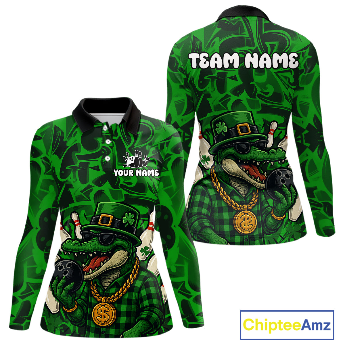Funny Alligator Bowling Shirts For Women Custom Green graffiti pattern St Patrick Bowling Team Jersey NQS11161