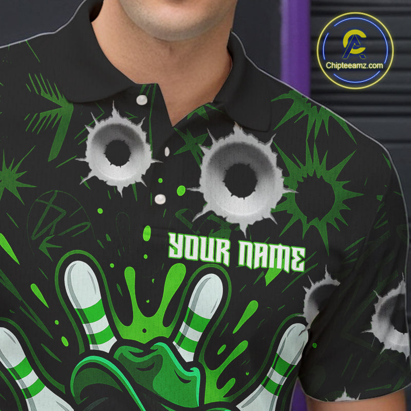 Funny Black and Green Bowling Cowboy gun Men bowling polo, 1/4 zip shirts Custom bowling team jersey NQS10658