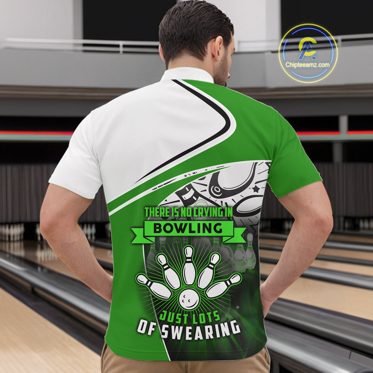 Funny Bowling Shirts For Men custom name There is no crying in bowling just lots of swearing | Green NQS11350