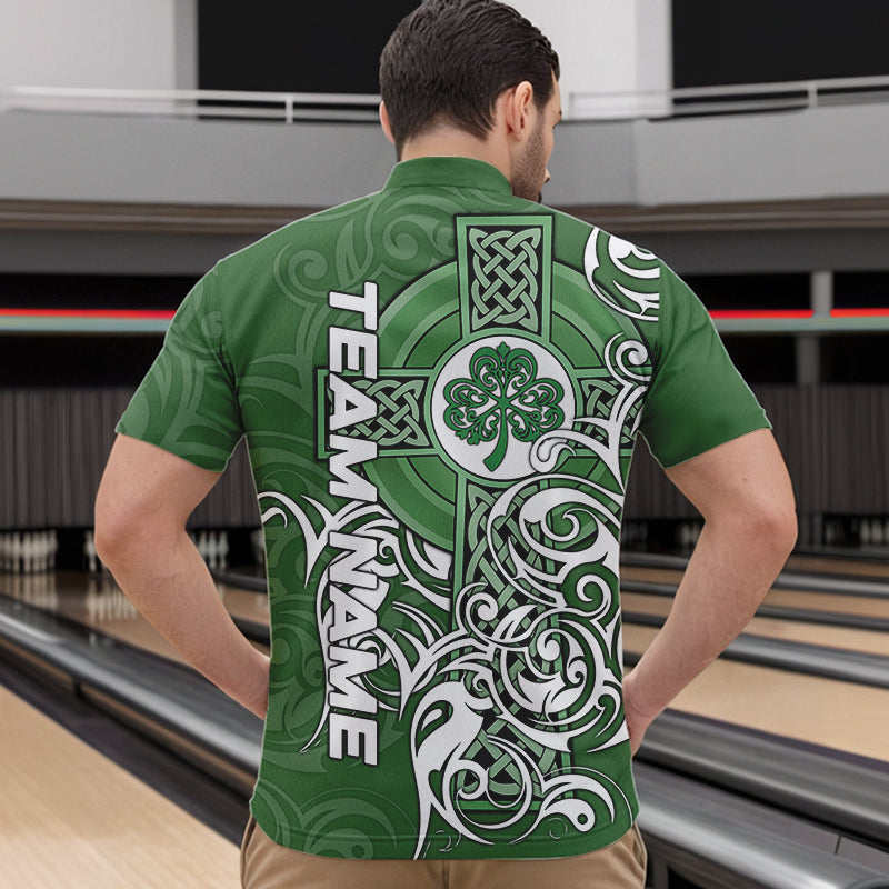 Green Irish Tribal Cross St Patrick's Day Mens bowling shirts Custom Lucky Bowling Team Jerseys NQS9382