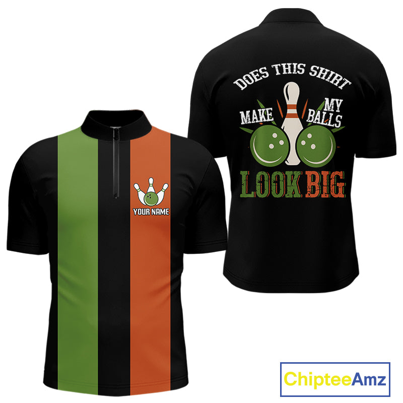 Green & Orange Retro Black Bowling shirts for men custom Does this shirt make my balls look big NQS10622