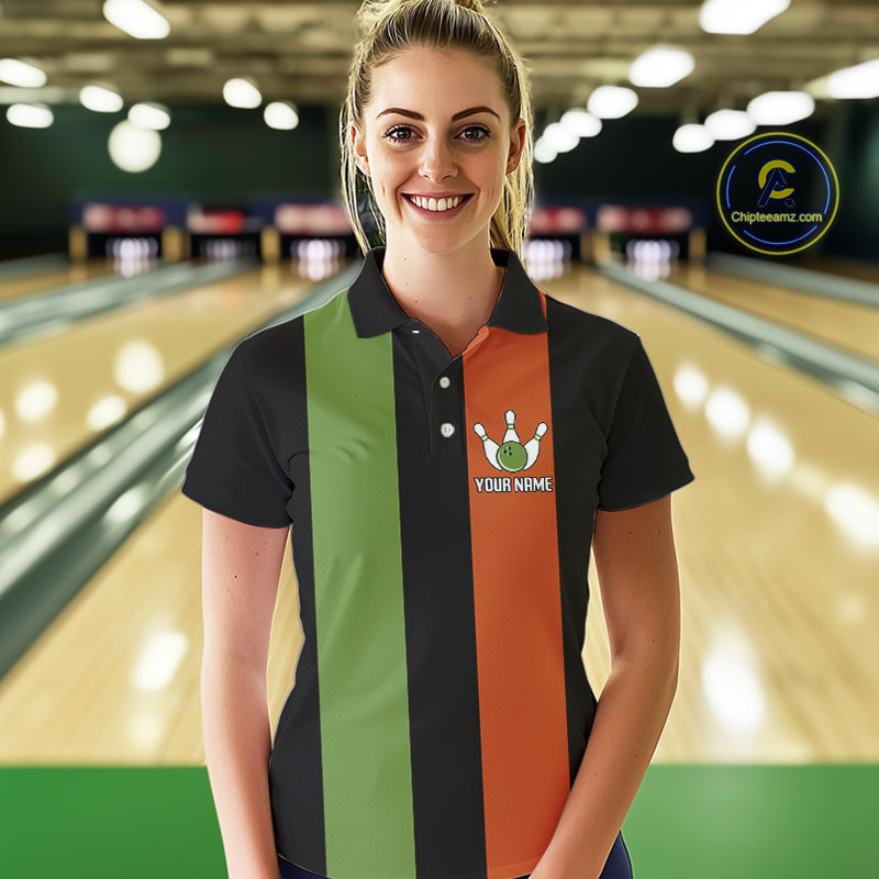 Green & Orange Retro Black Bowling shirts for Women custom Does this shirt make my balls look big NQS10622