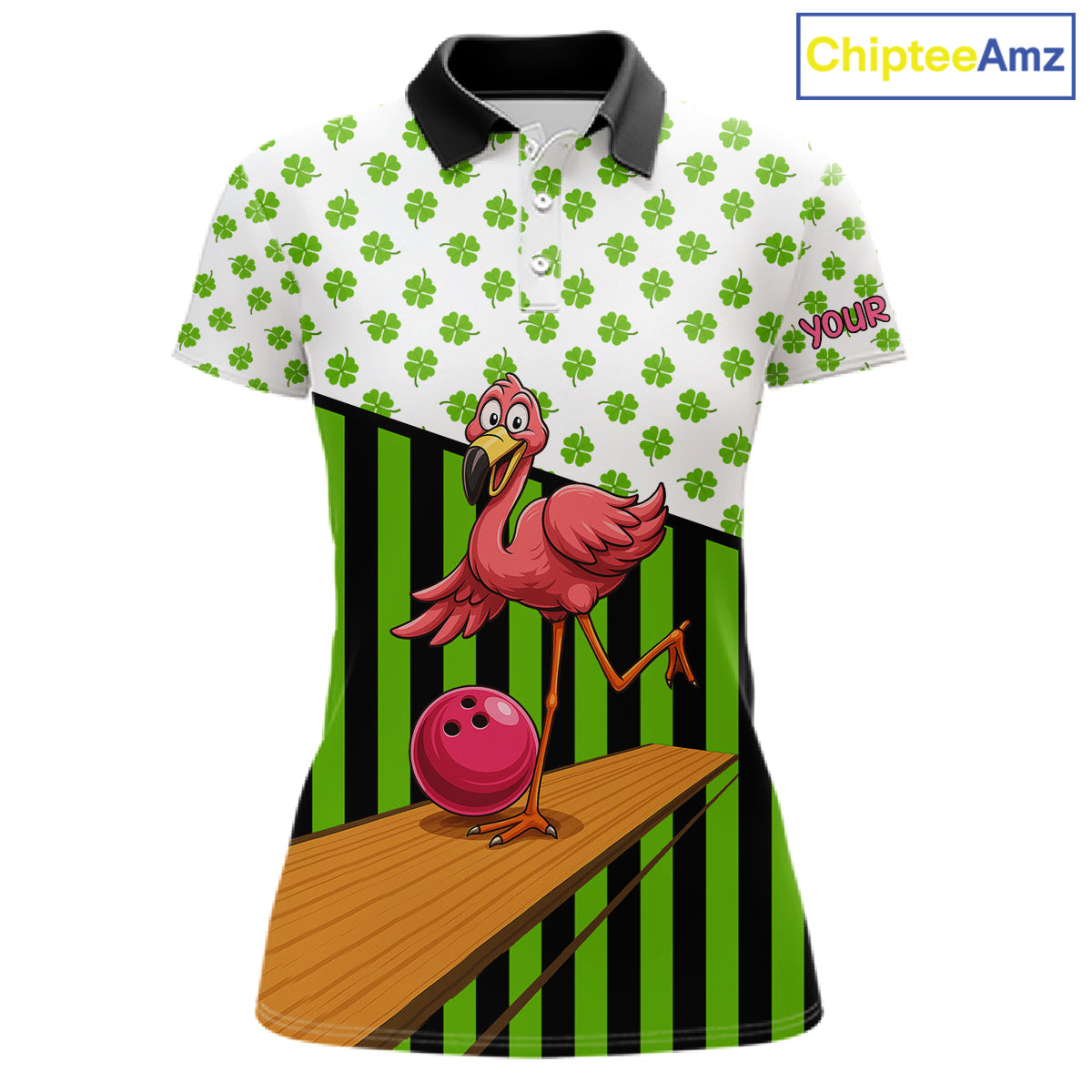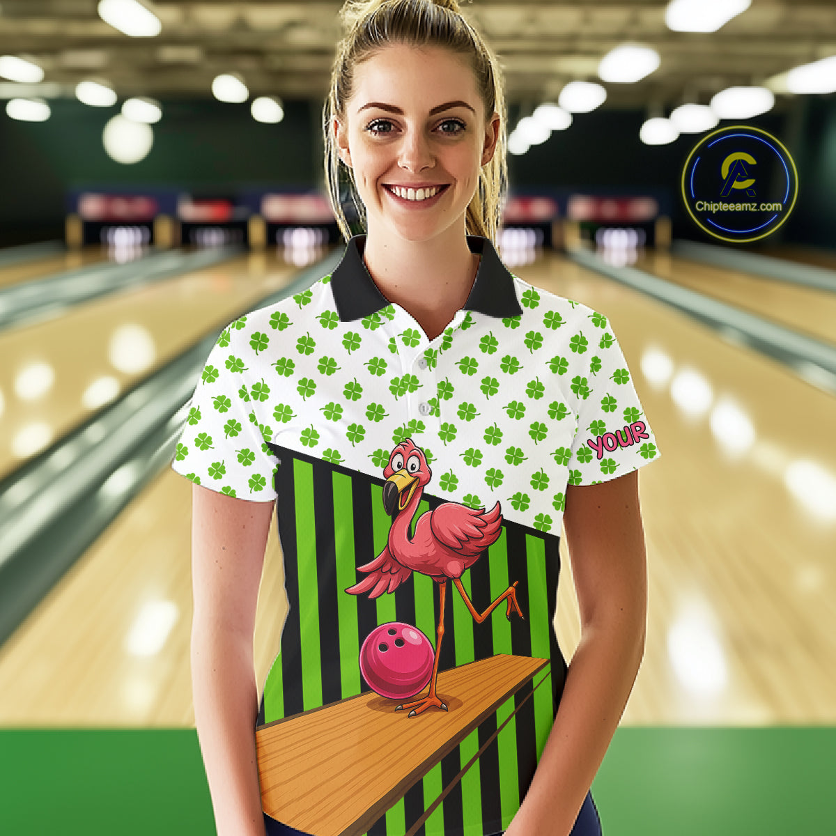Green shamrock pattern flamingo Bowling shirts for Women Custom St Patrick's Day Team bowling outfit NQS11247