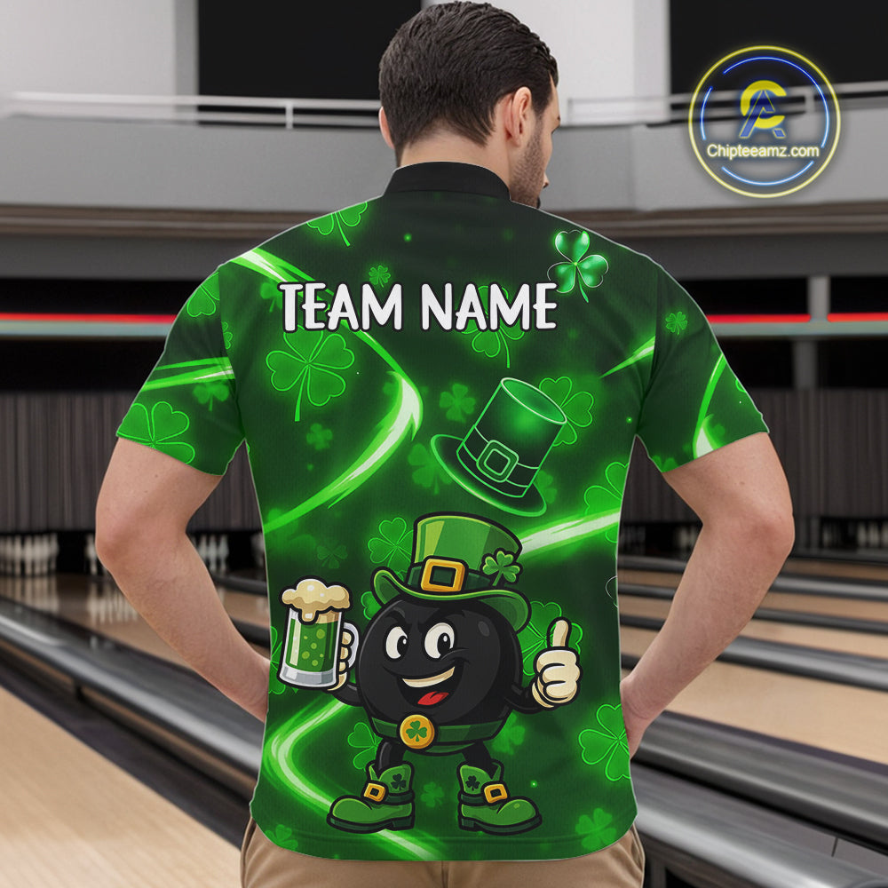 Green shamrock pattern Funny Bowling Shirts For Men Custom St Patrick's Day Lucky Team Bowling Jersey NQS11133
