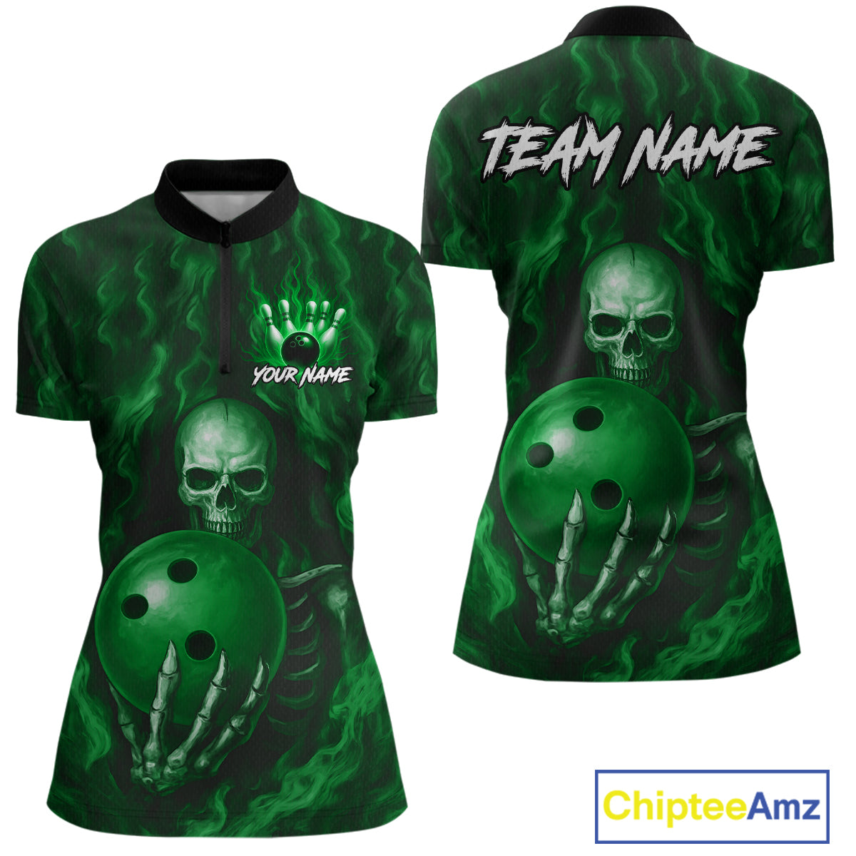 Green Skull Bowling Shirts for Team Men Women Custom Bowling Jerseys for Bowlers MBL206