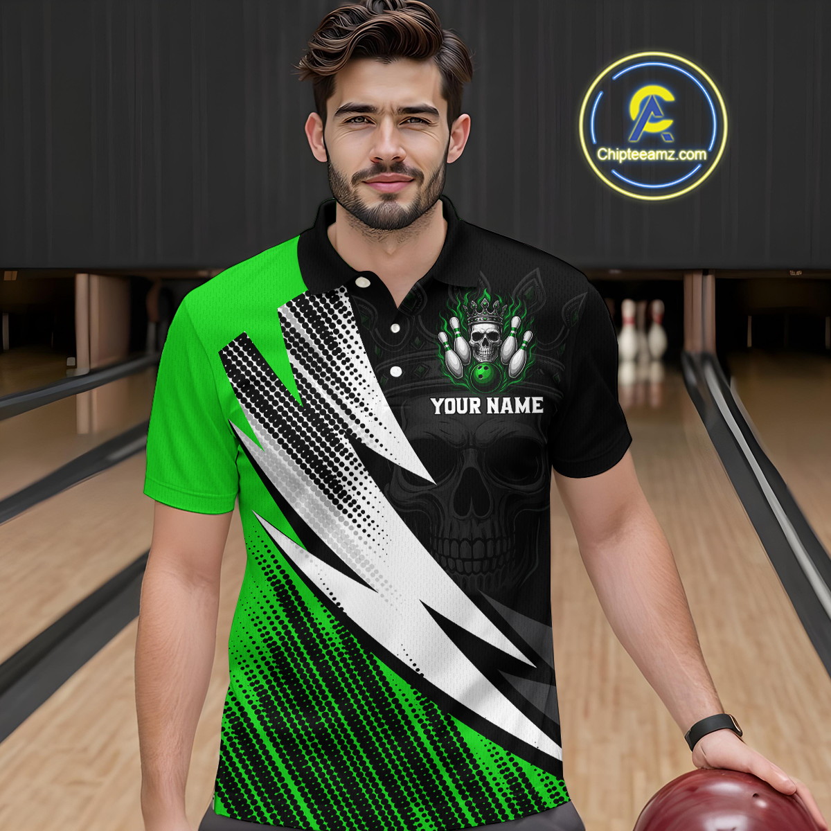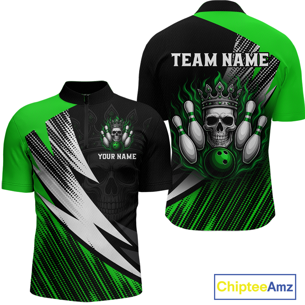 Green Skull Crown Bowling Custom Men Bowling Shirt Polo & Quarter-Zip Bowling Team Jerseys HNT65
