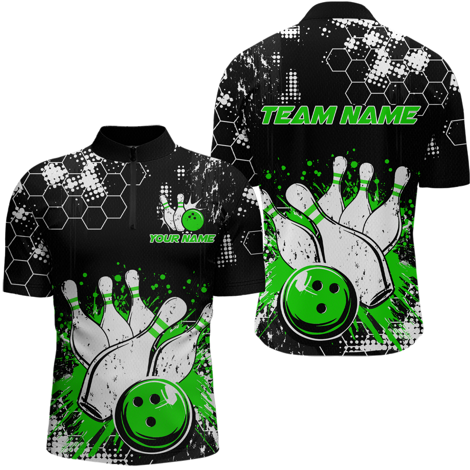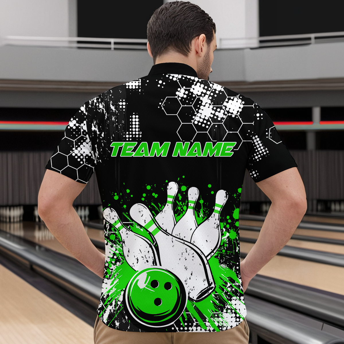 Green Watercolor Bowling Shirts Men Women Team Custom Bowling Polo & 1/4 Zip Shirt MBL60
