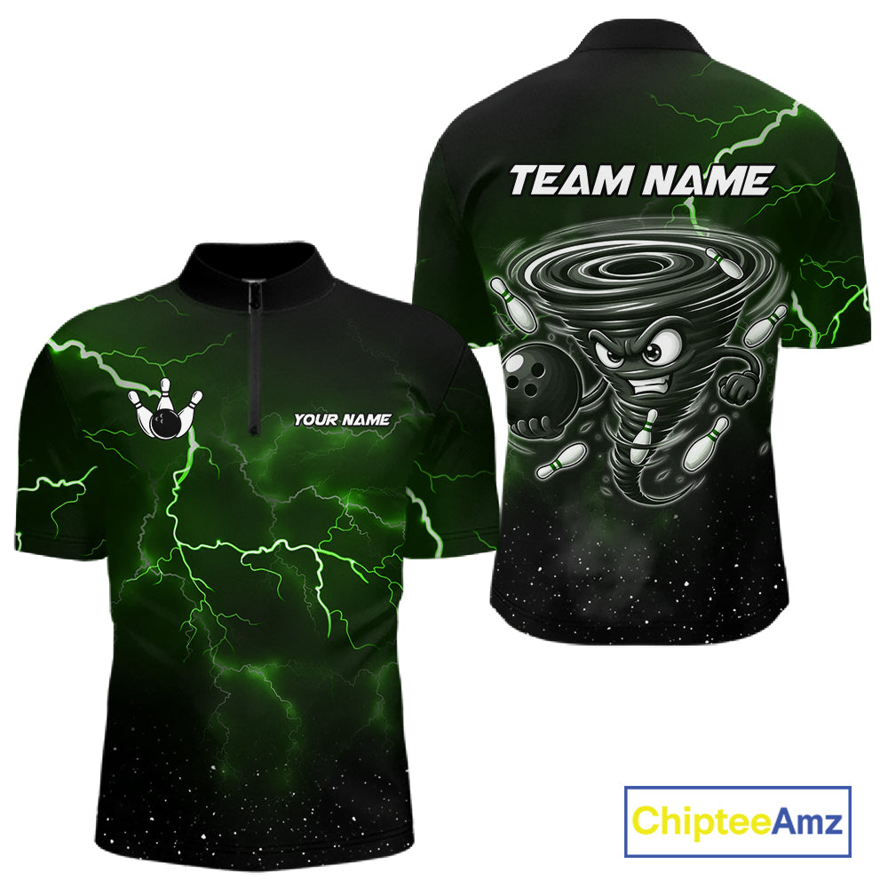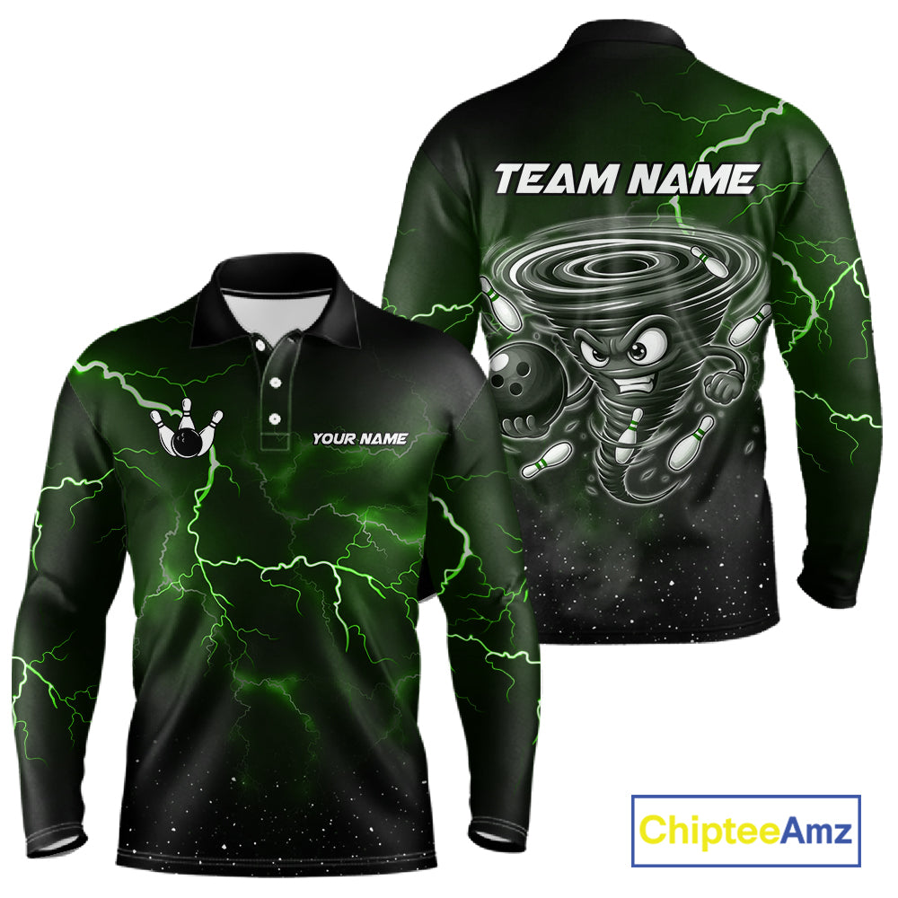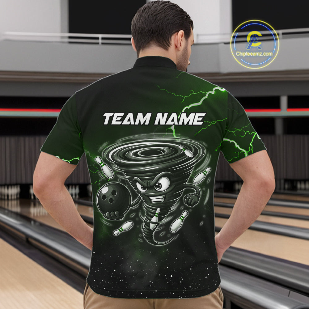 Personalized Thunder Lightning Tornado Funny Bowling Shirt For Men, Bowling Team Jersey |Green TDM5395