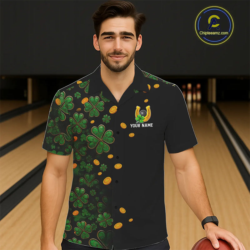 Personalized Green Clover St Patrick's Day pattern Bowling Hawaiian Shirts, Team Bowling Outfit NQS11206
