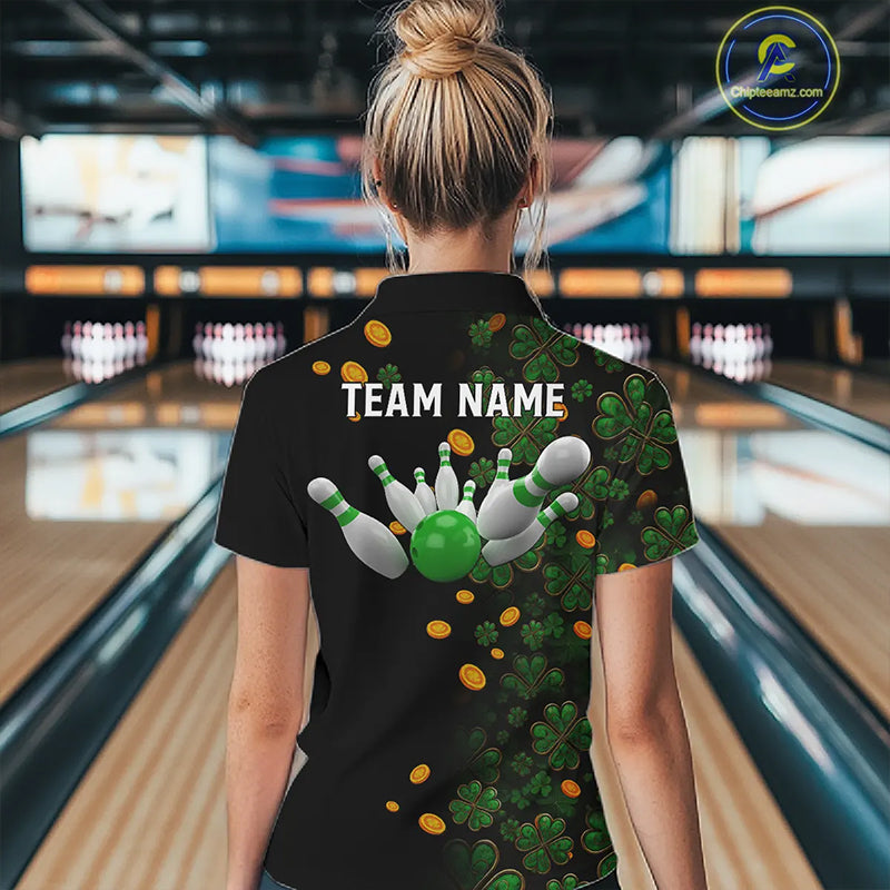 Personalized Green Clover St Patrick's Day pattern Bowling Shirts For Women, Team Bowling Jerseys NQS11206