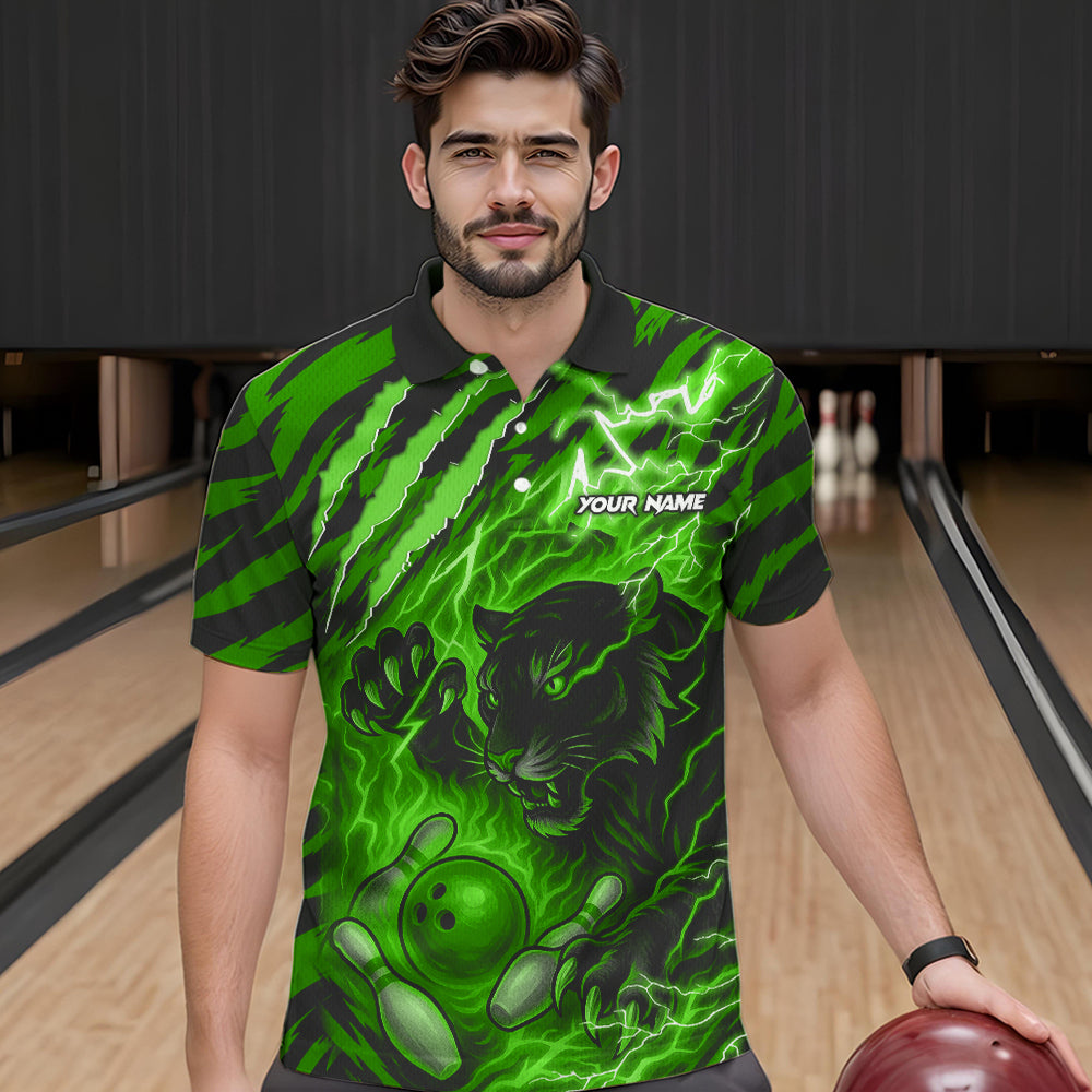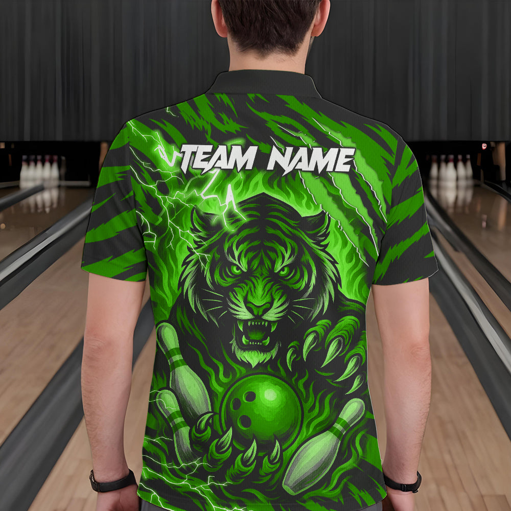 Personalized Tiger Bowling Shirts For Men, Green Flame Lightning Thunder Tiger Team Bowling Jerseys NQS11233